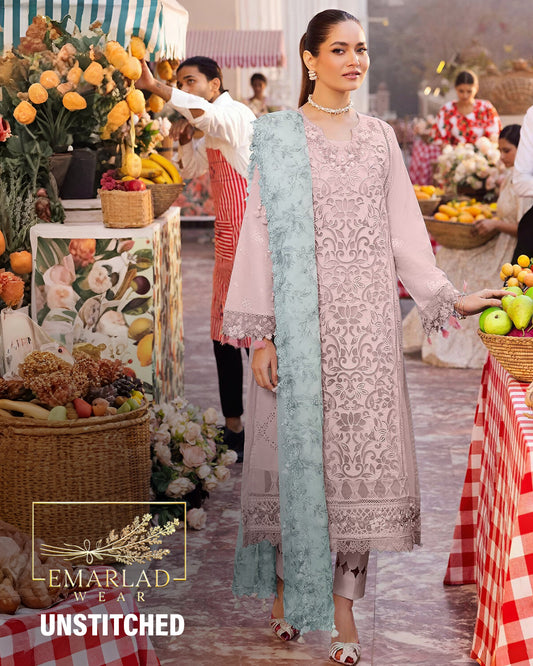 Elaf Premium Pink Petal ETS-01B | Peach - Printed Chikankari Collection