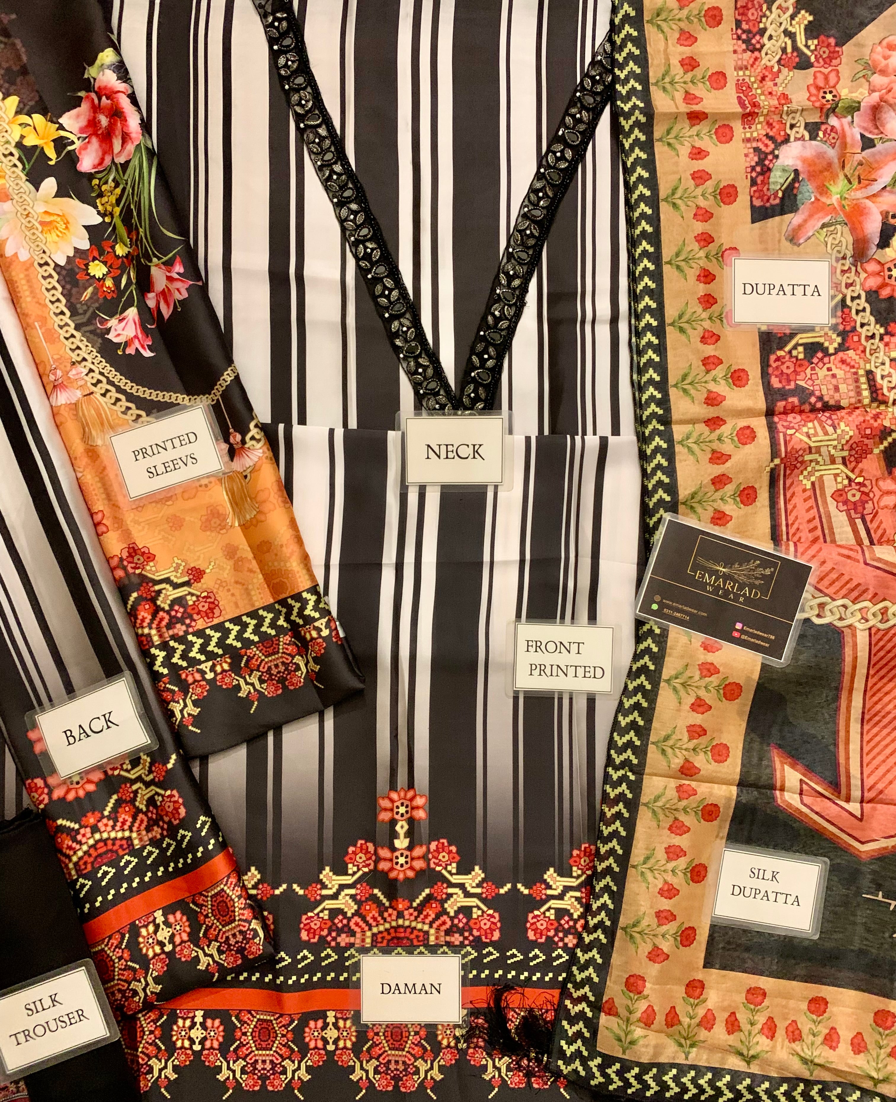 Maria b lining black white Printed Pure Charmeuse Silk Suit