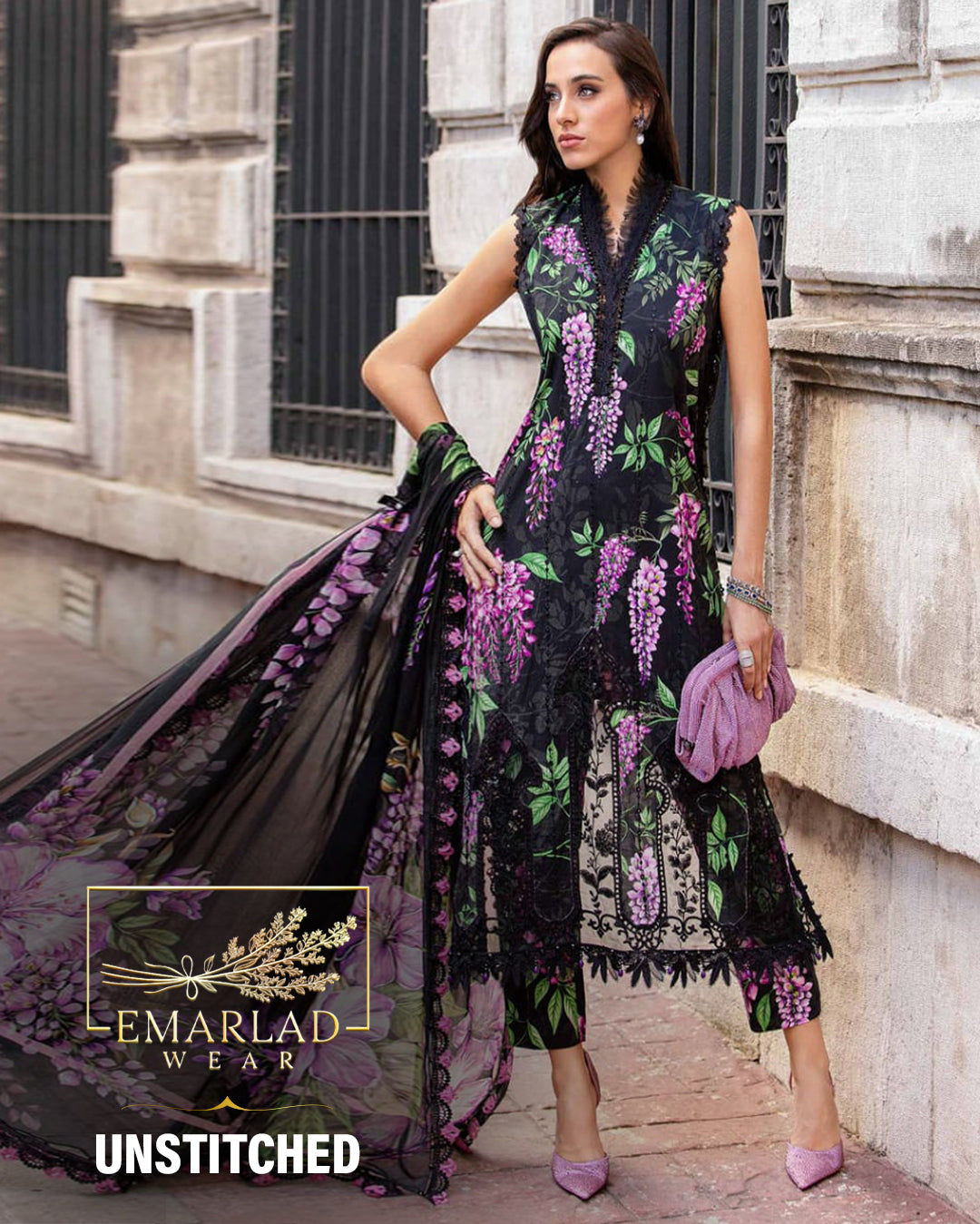 Maria b black grape 3 Piece Unstitched Printed Lawn Suit