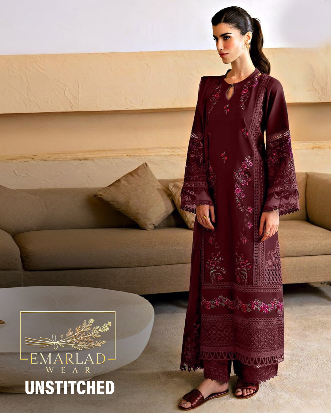 Afrozeh | Maroon - Lawn Cotton Chikankari Collection
