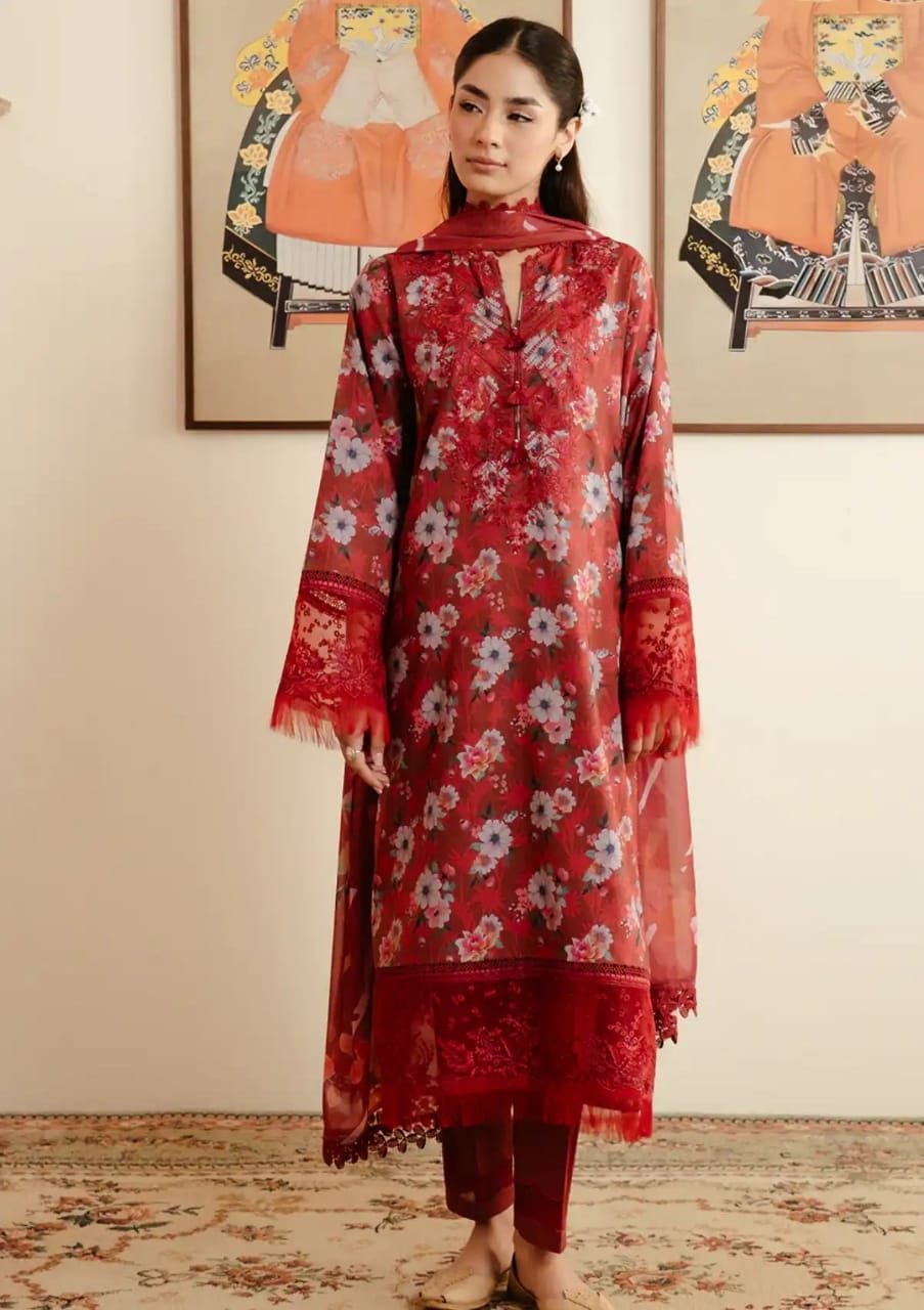 Afrozeh Orange Pure Lawn Embroidery Digital Print 3pc