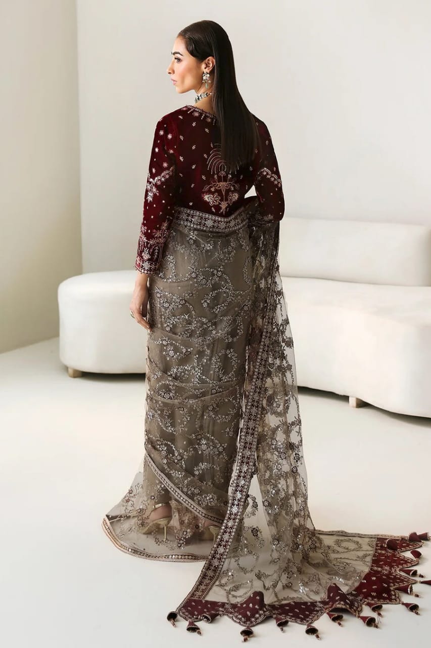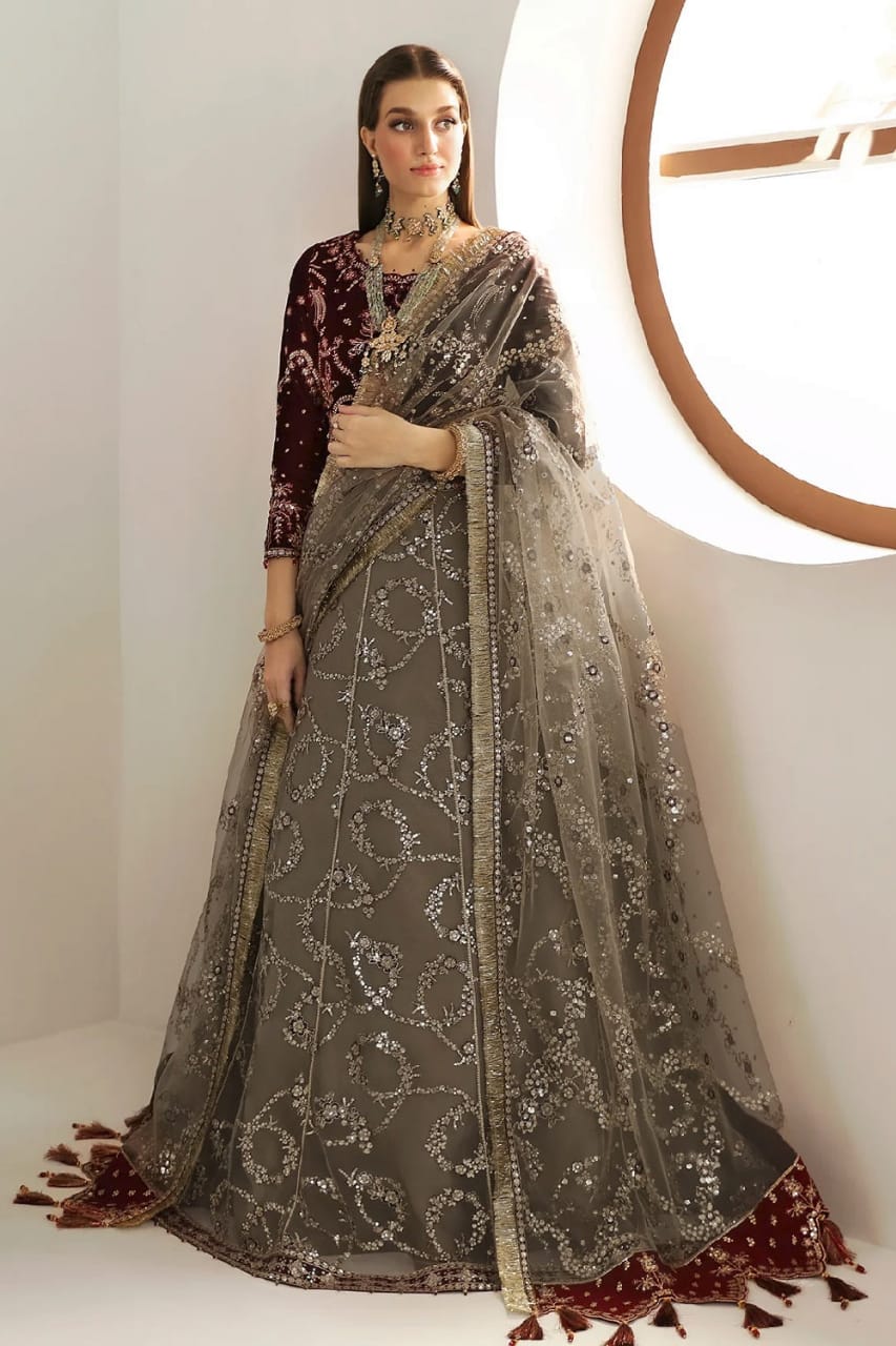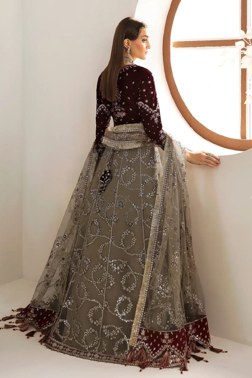 Alizey | Skin Mehroon Maxi BH - Velvet Body with Net