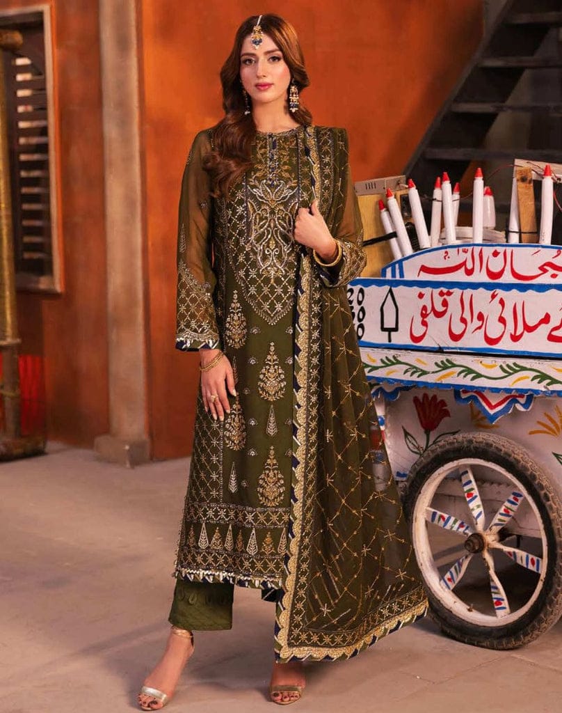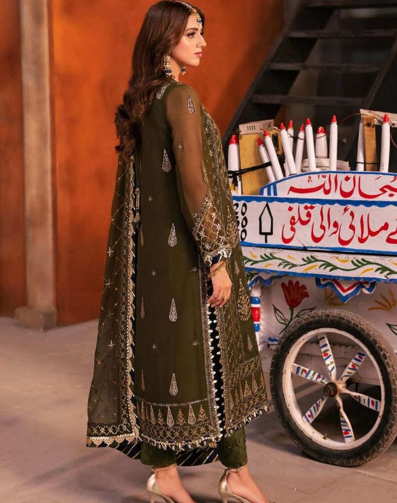 Asim Jofa - Mehndi Green - JZ - Chiffon Collection