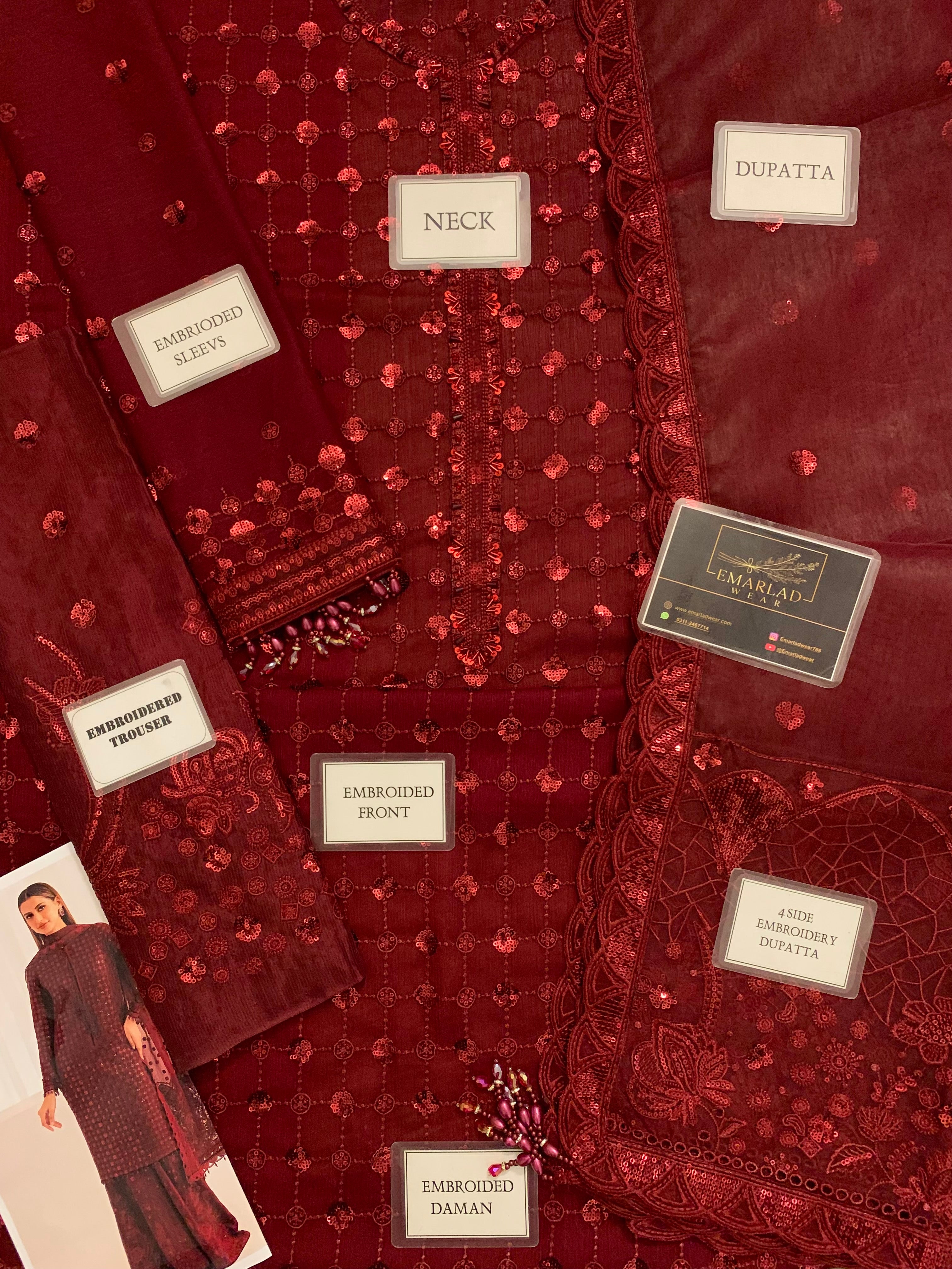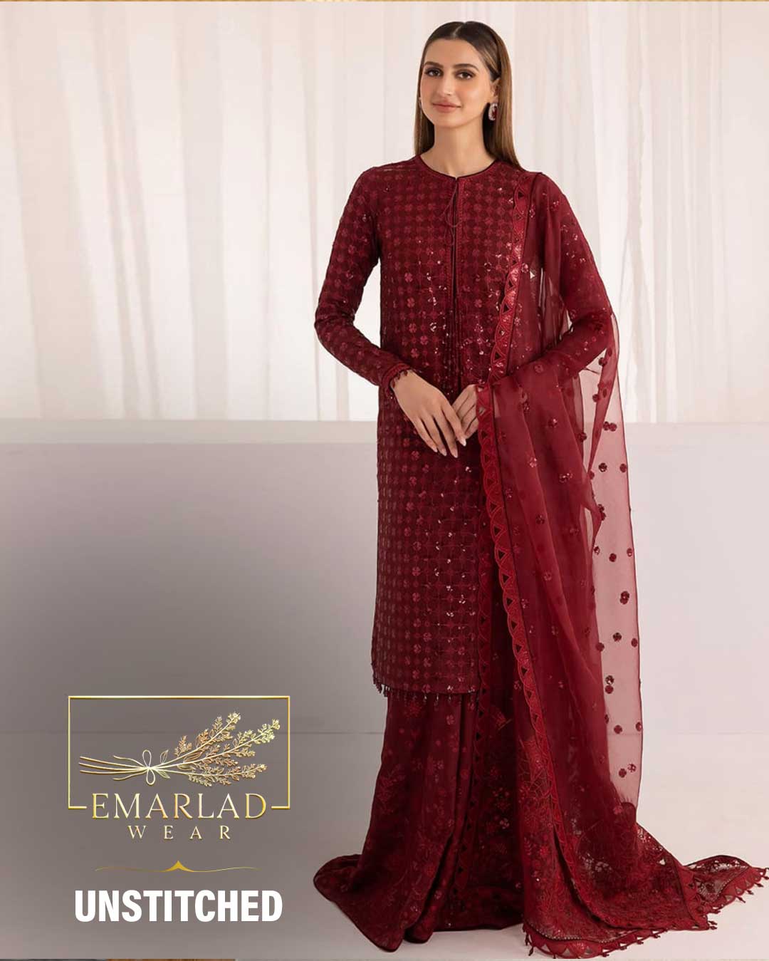Barooque Mehroon chiffon 3PC