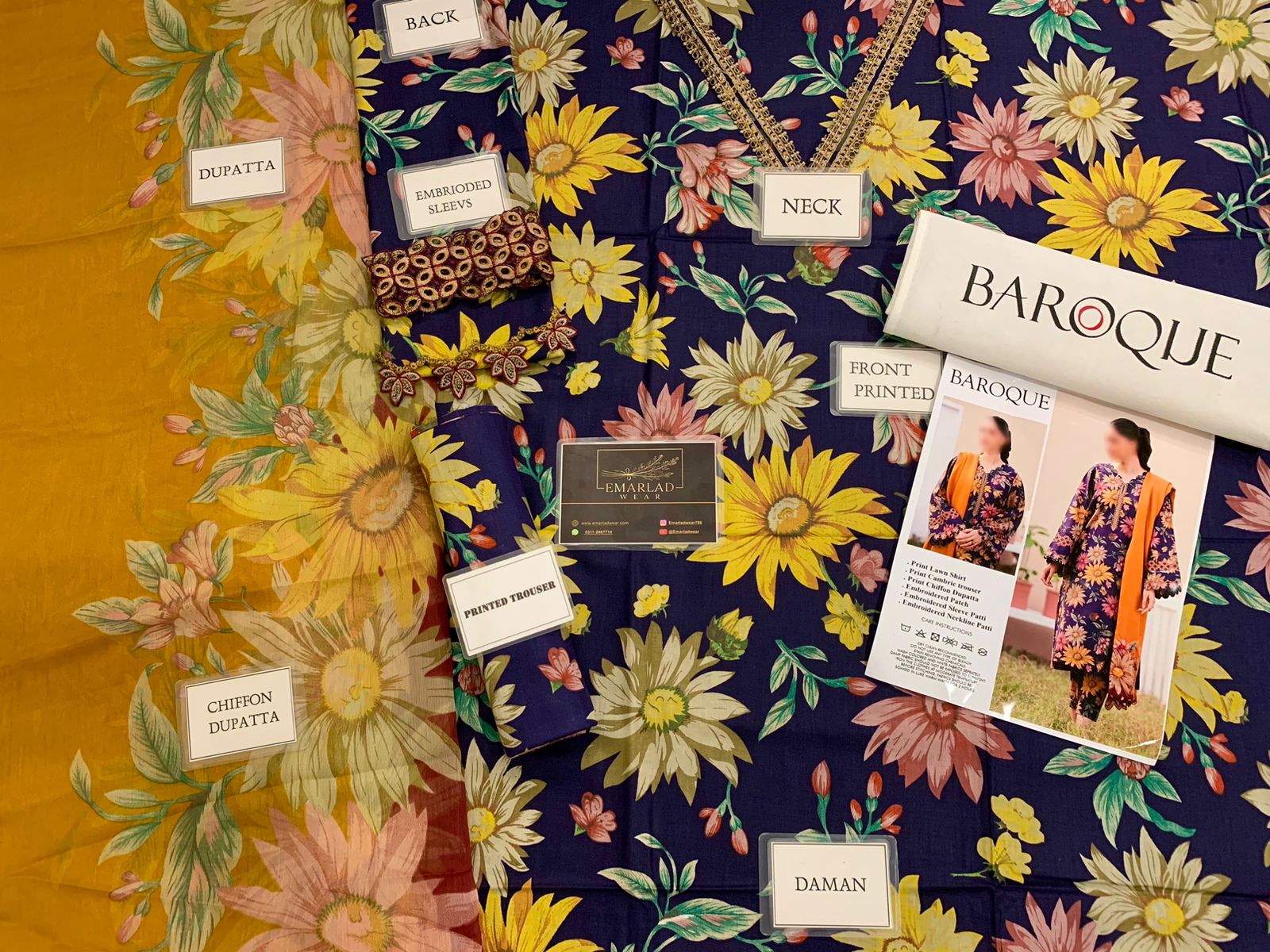 Baroque Blue Pure Lawn Embroidery Digital New Arrival