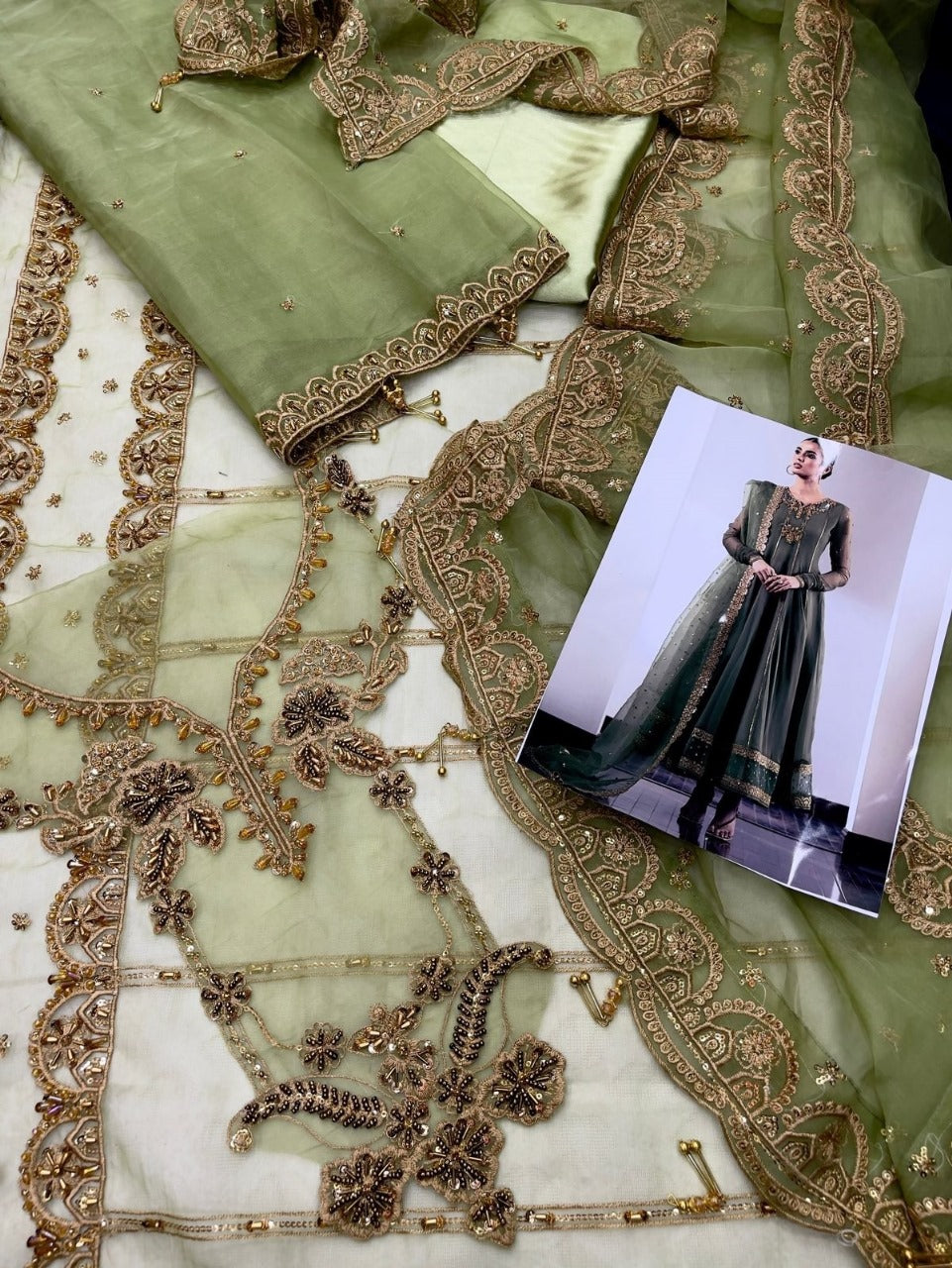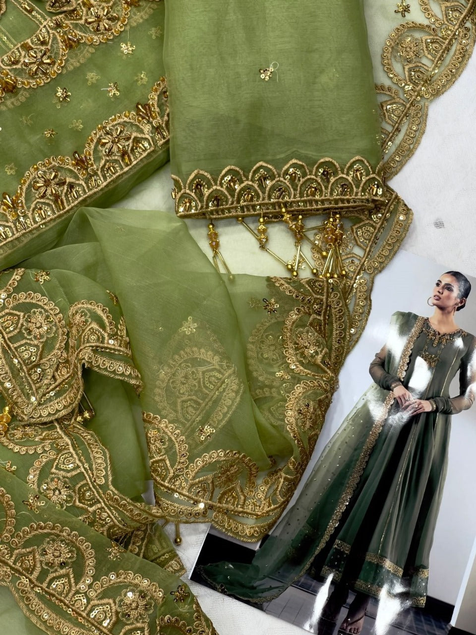 - ORGANZA FROCK WITH EMBROIDERED HANDWORK PLUS UNIQUE DOUBLE BORDER ALONG WITH HANDWORK