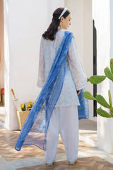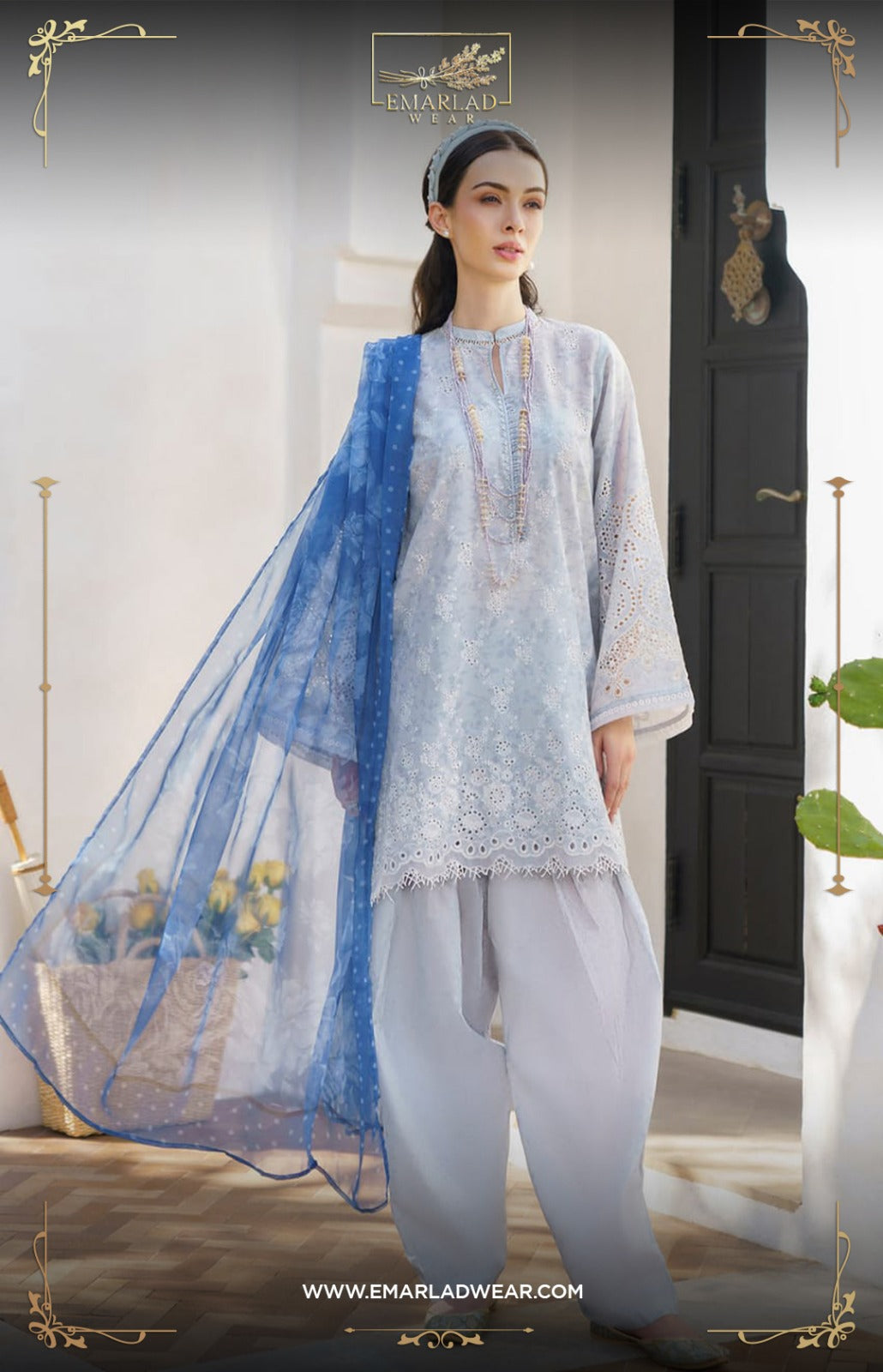 Baroque Gray Blue Pure Lawn Embroidery Shifle Chikankari Dress 3pc