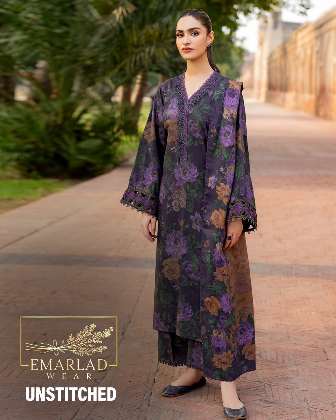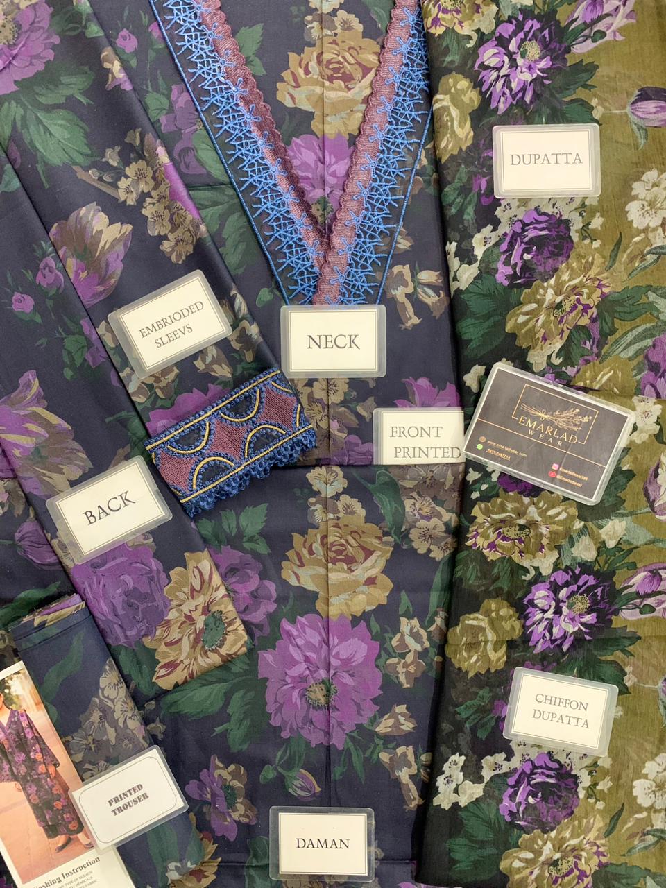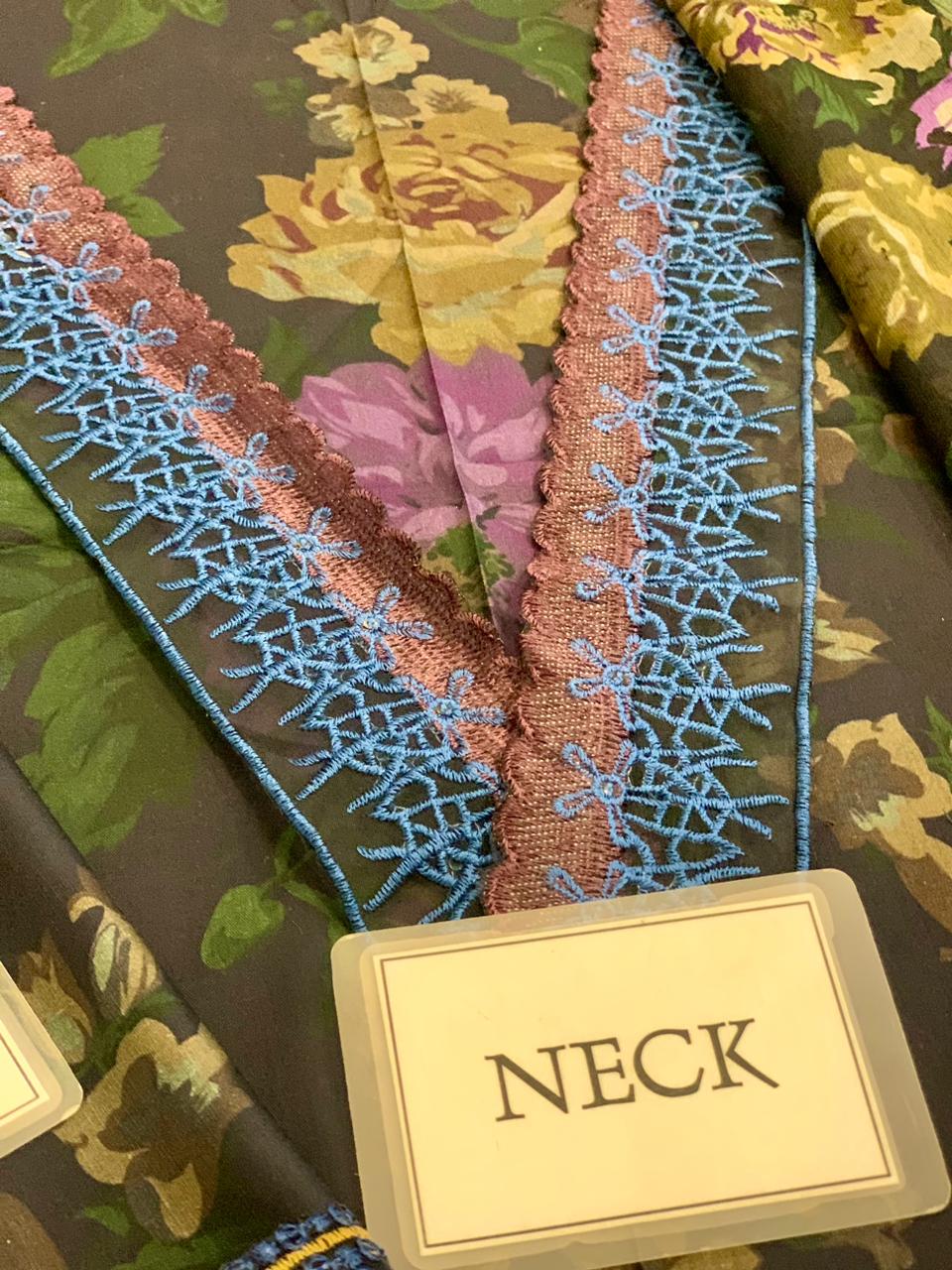 Digital printed lawn with fully heavy embroidered spangle work neckline