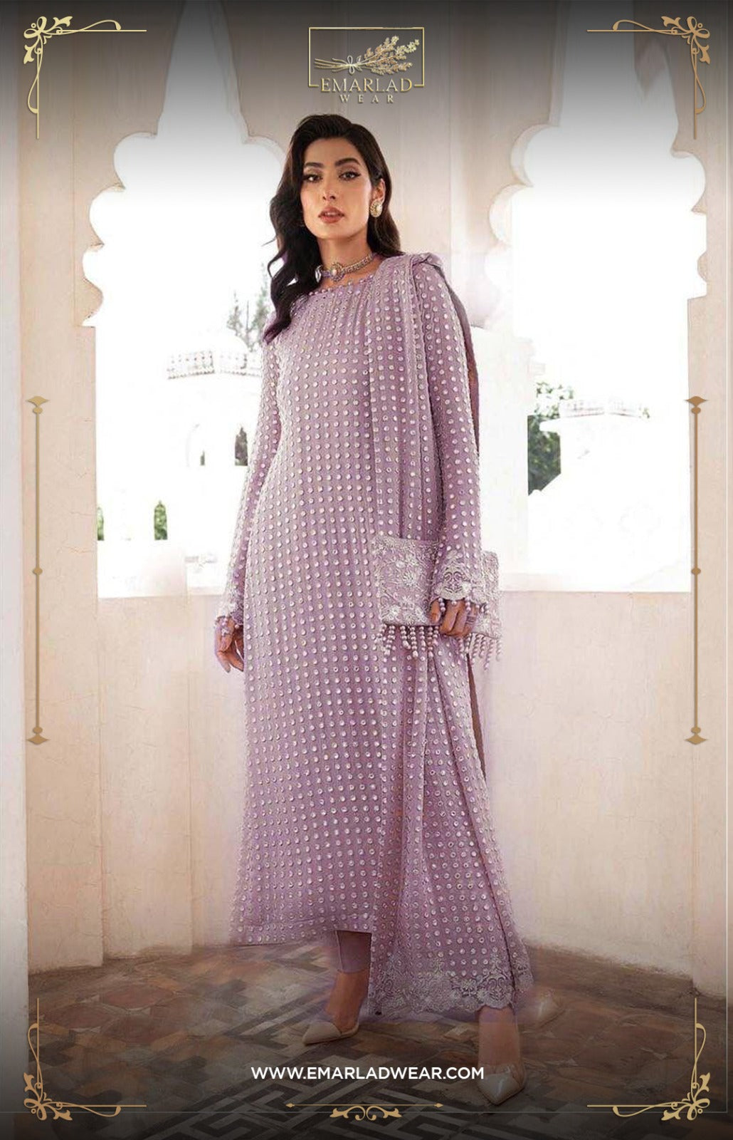 Baroque T Pink Formal Collection Stitched Chiffon Dress 3pc