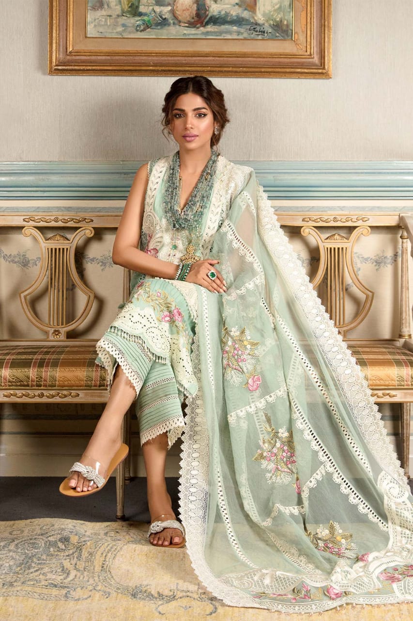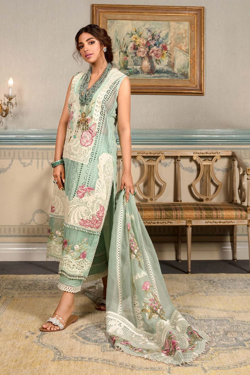 Crimson Auqa Green Luxury Lawn Embroidery Chikankari Collection