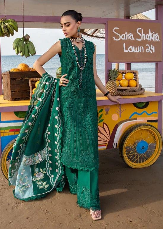 Crimson Bottle Green Luxury Chikankari Embroidery Dress