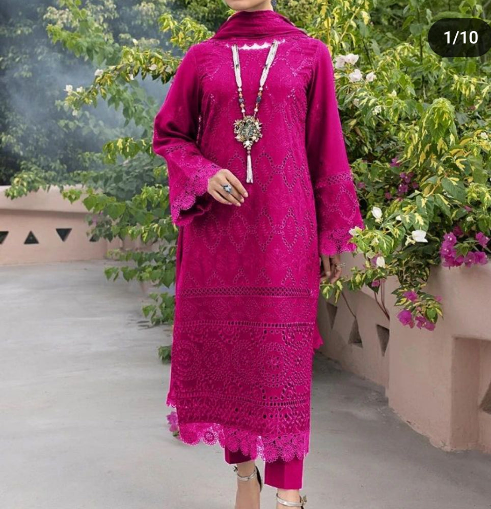 DESIGNER WEAR PINK CHIKANKARI LAWN COLLECTION 3PC