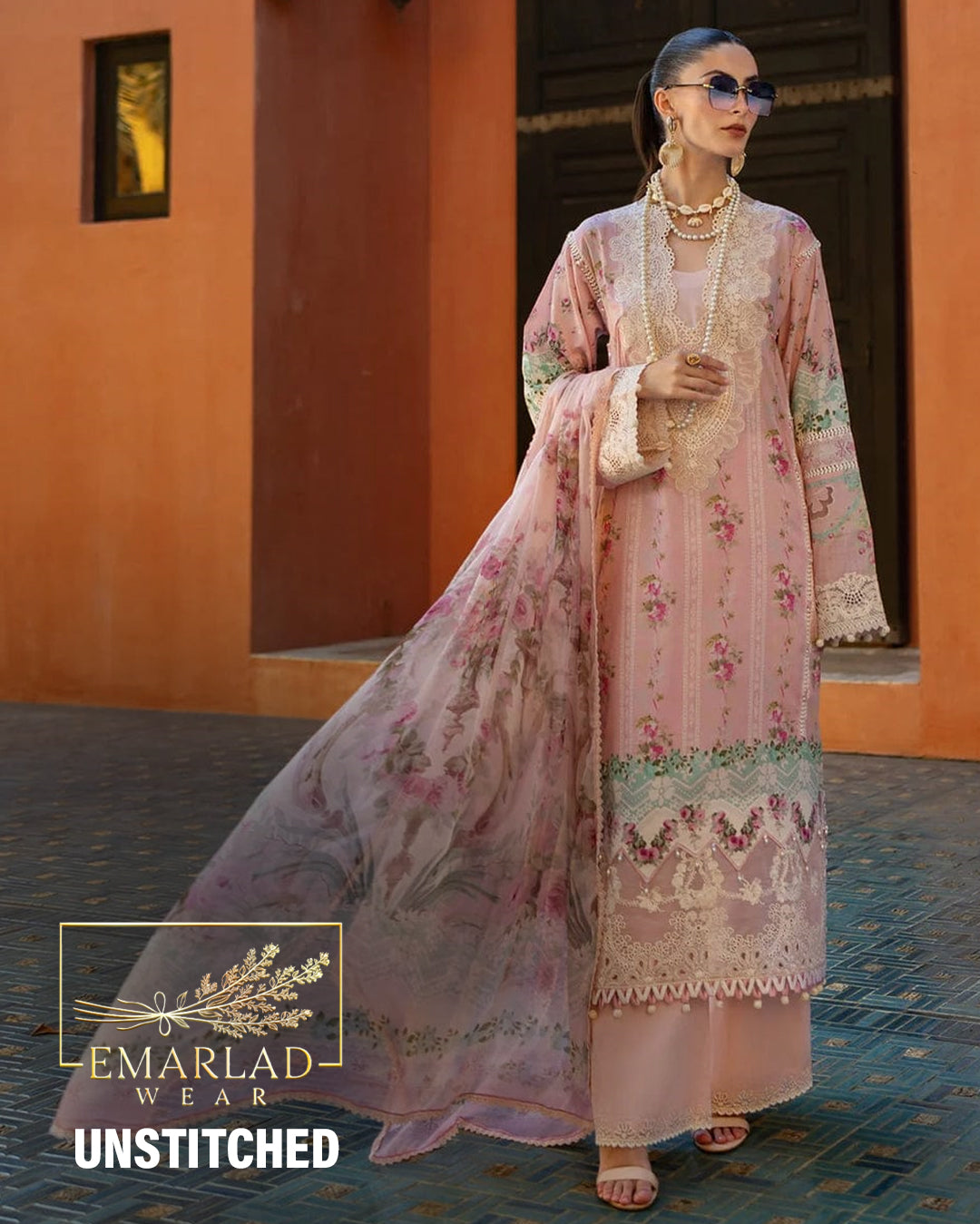 Elaf Premium Pink Petal ETS-01B | Peach - Printed Chikankari Collection