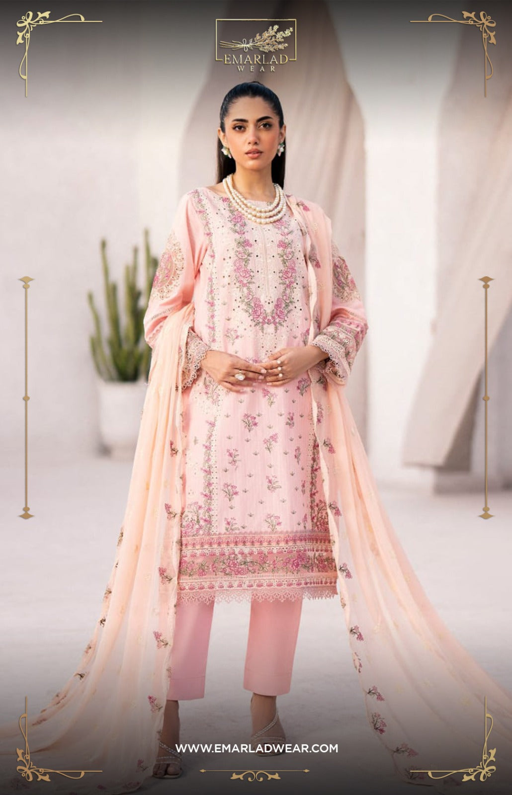 Emaan Adeel Pink Lawn Embroidery Chikankari Collection 3pc
