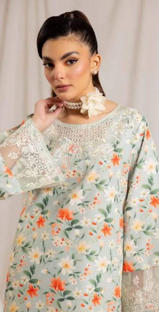 Ethnic Inspired Fully Printed Light Mint Embroidery Dress