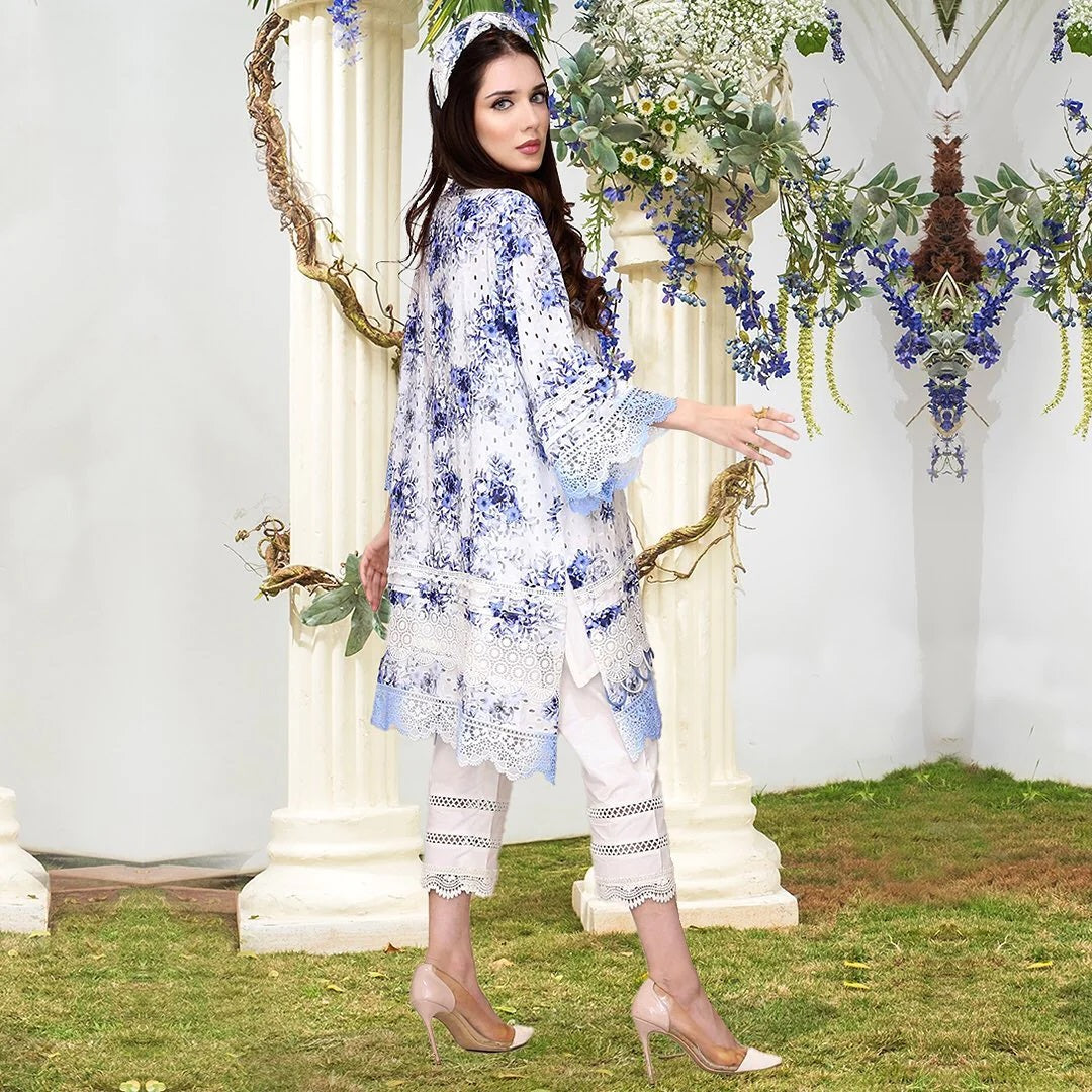 FARIDA HASSAN WHITE & BLUE CHIKANKARI LAWN DRESS