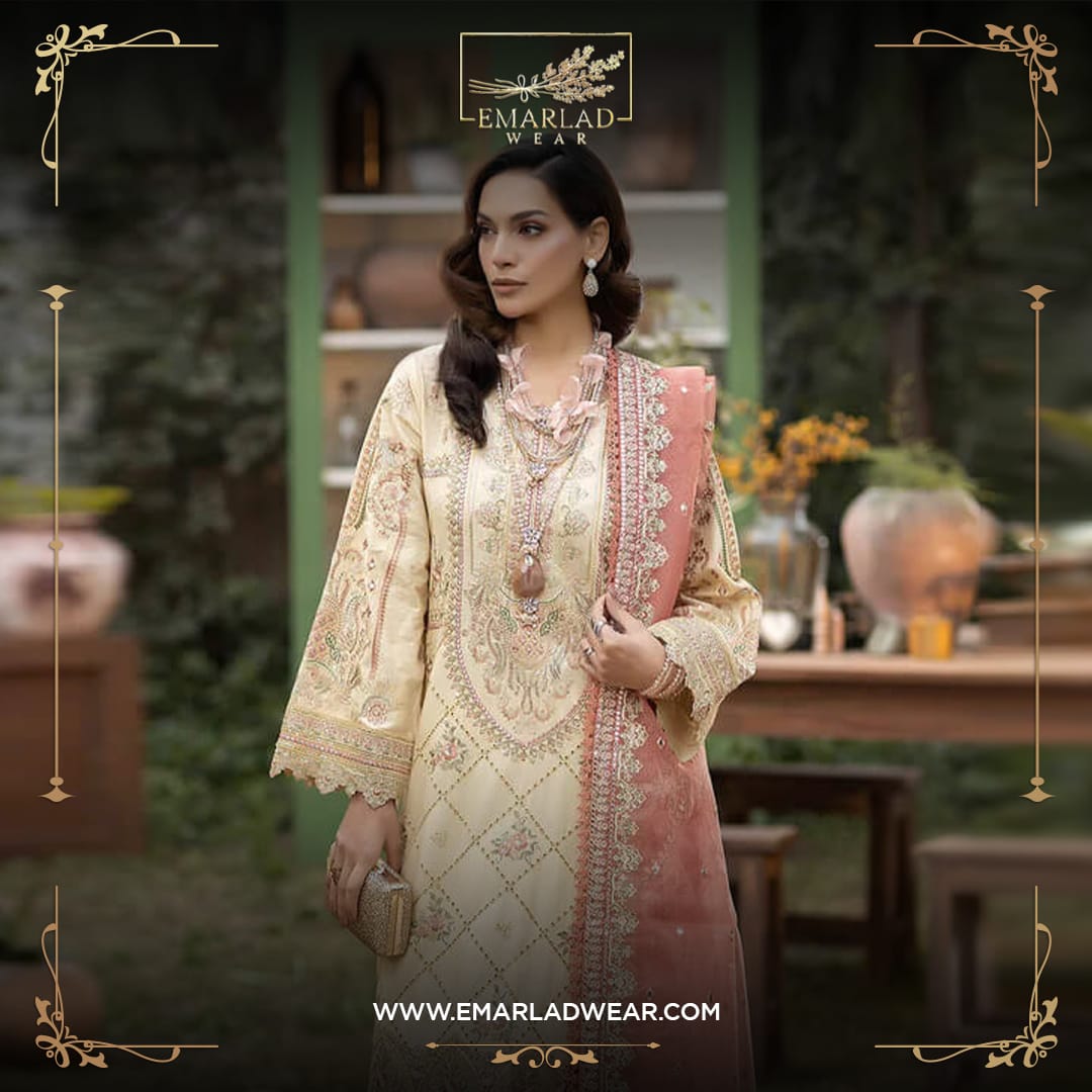 Imrozia Cream Chikankari Lawn Embroidery Dress New Aarrival