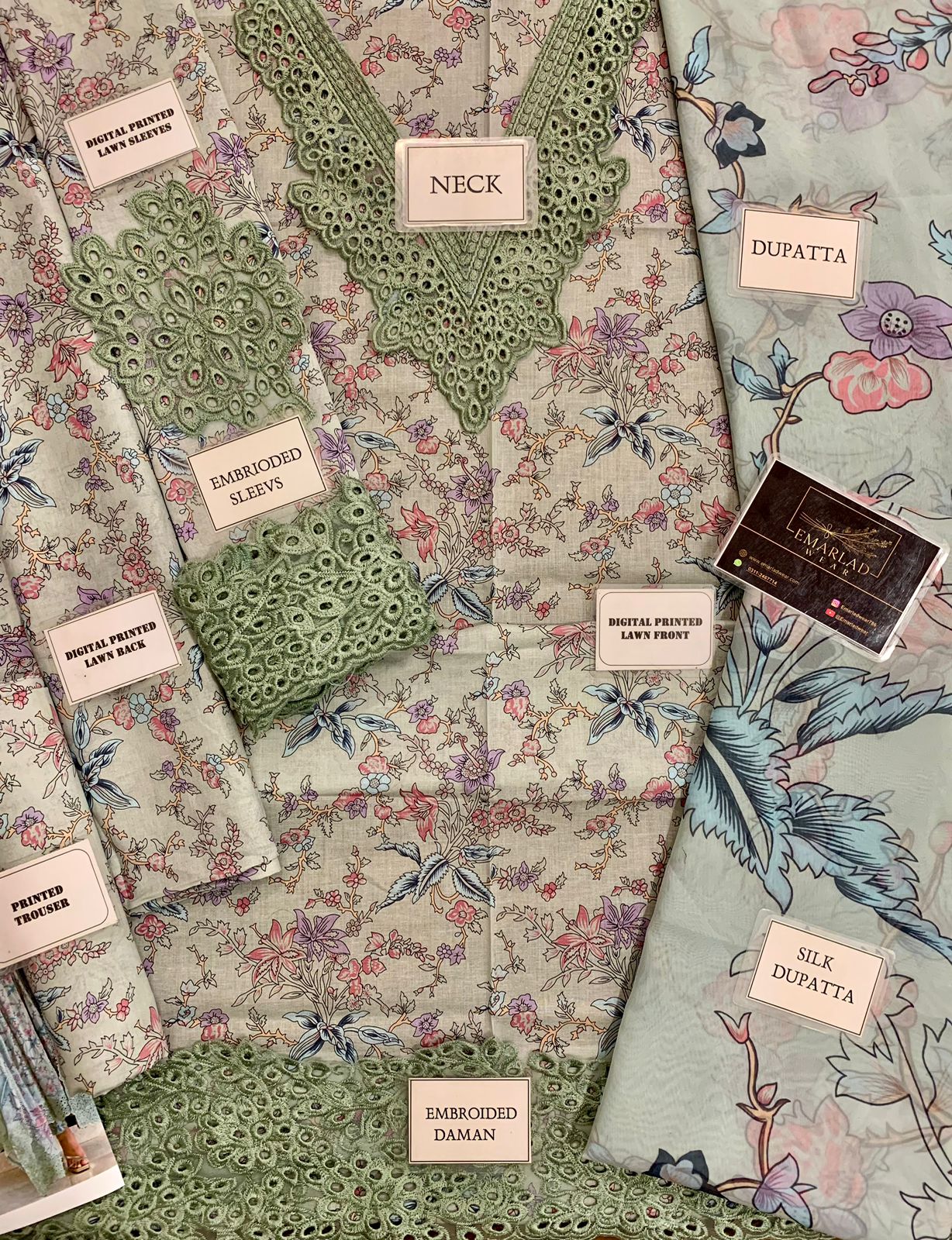 Iznik green Dastan Pure Lawn Embroidery New Arrival 3pc