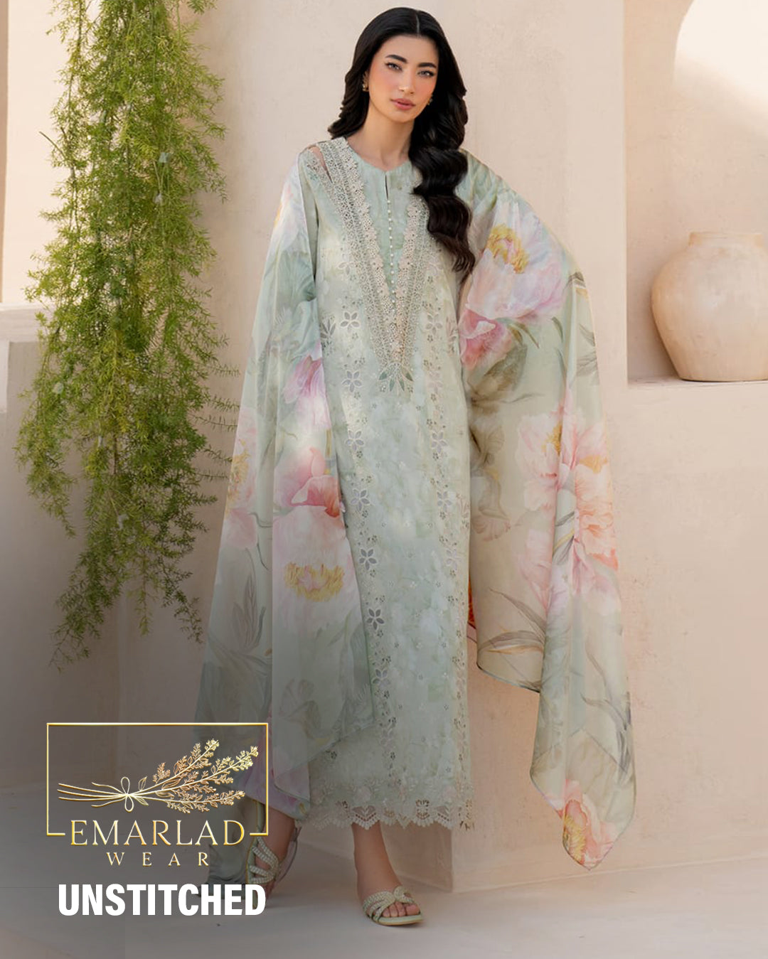 •Printed 90/70 Lawn with heavy Chikankari Front Along with heavy Embroidered Neck & Daman Patch
