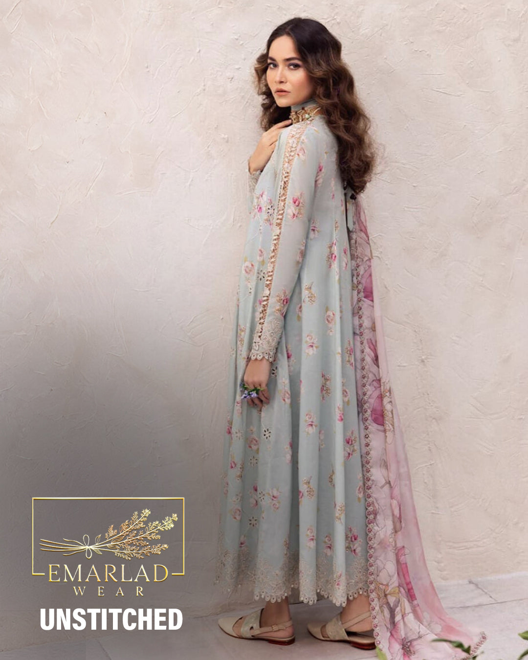 Printed lawn front with heavy embroidered chickenkari daman boarder