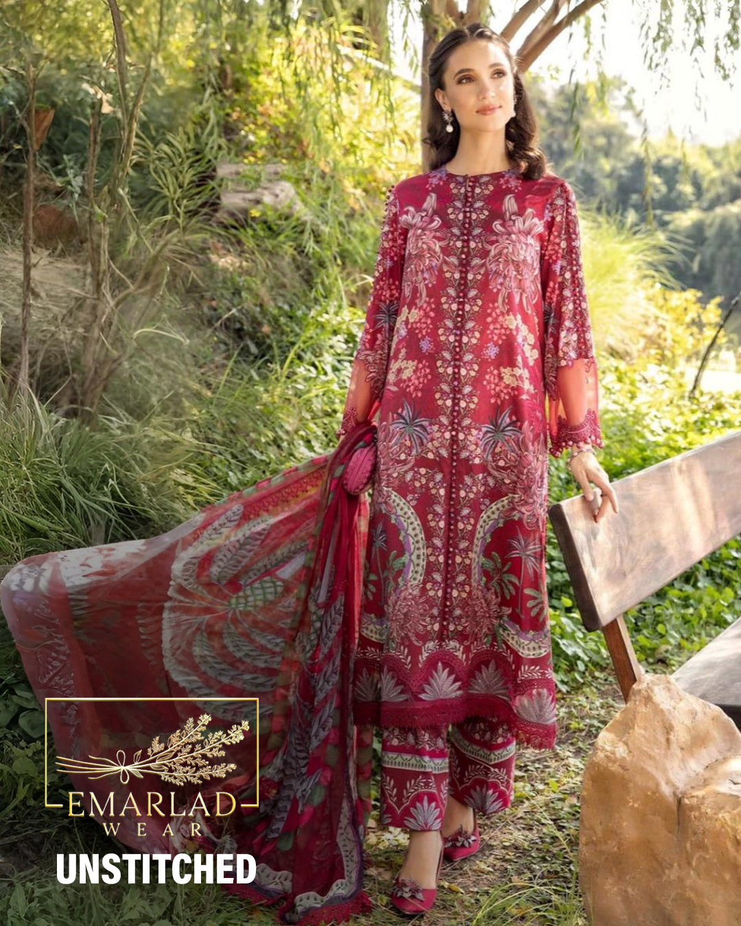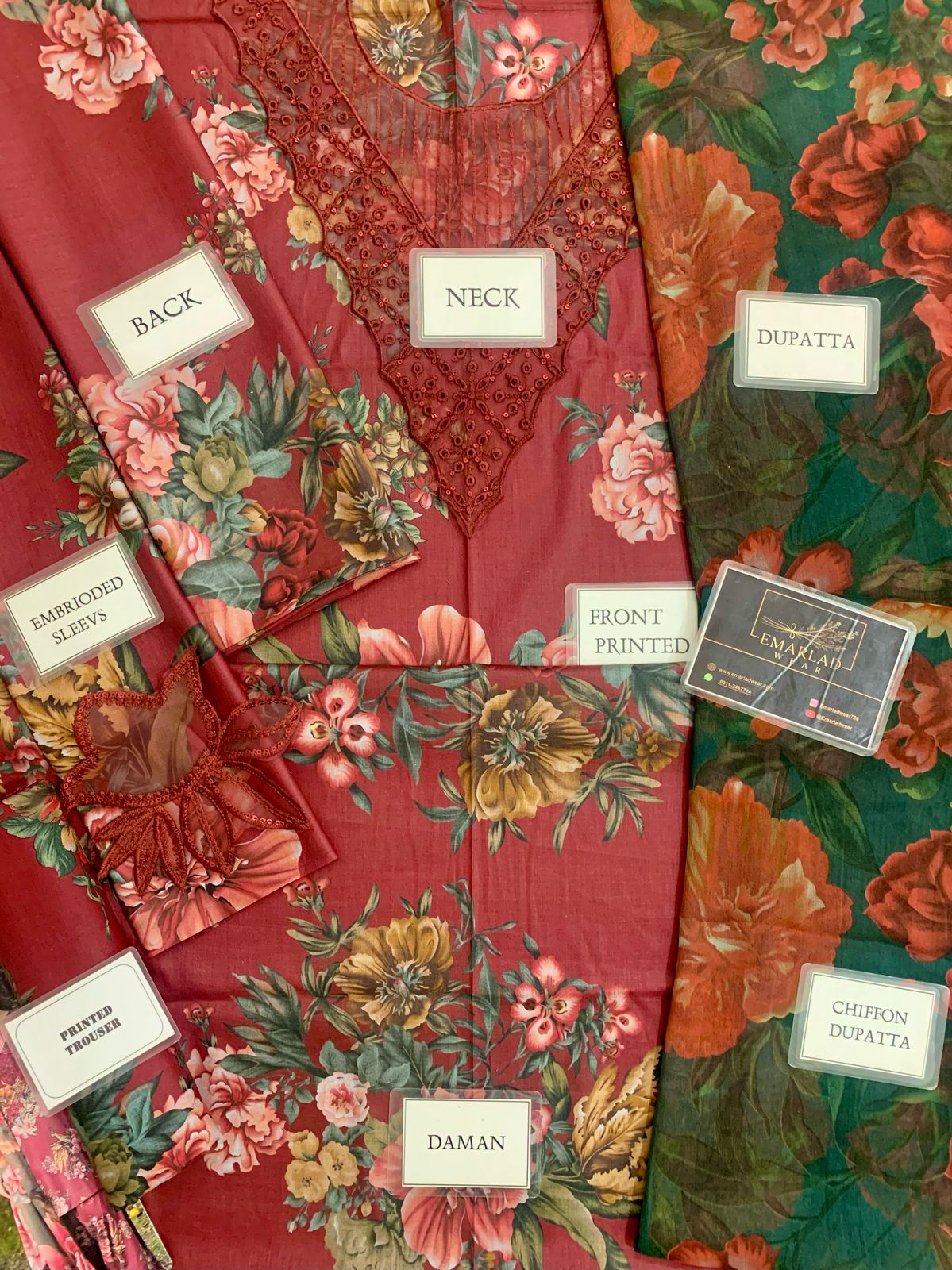 Digital printed lawn sleeves with embroidered spengle work sleeve bunches