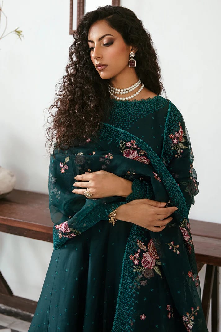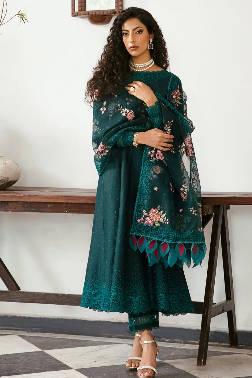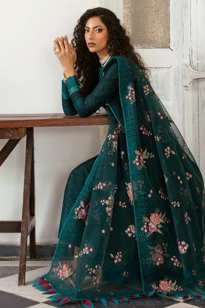 Jazmin Dark Green Shiffle Chikankari Dress 3pc
