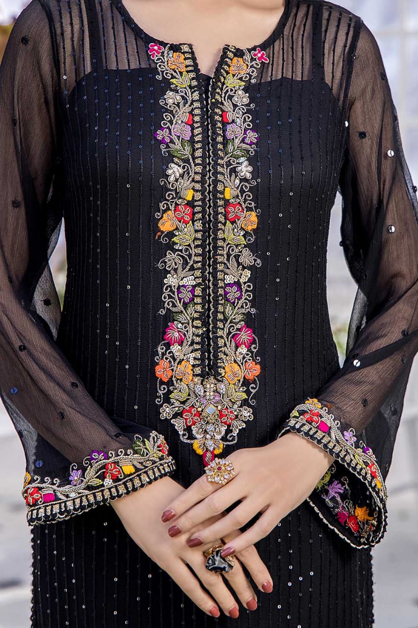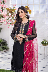 KHUDA BAKSH FORMAL CHIFFON DRESS BLACK & PINK VELVET