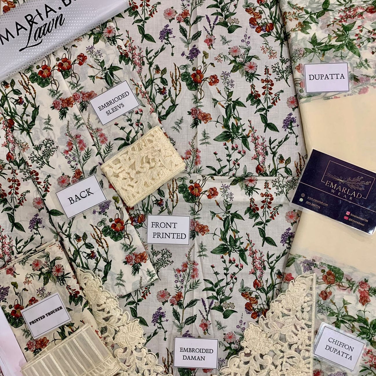 M.B CREAM FLORA LAWN EMBROIDERY COLLECTION 3PC