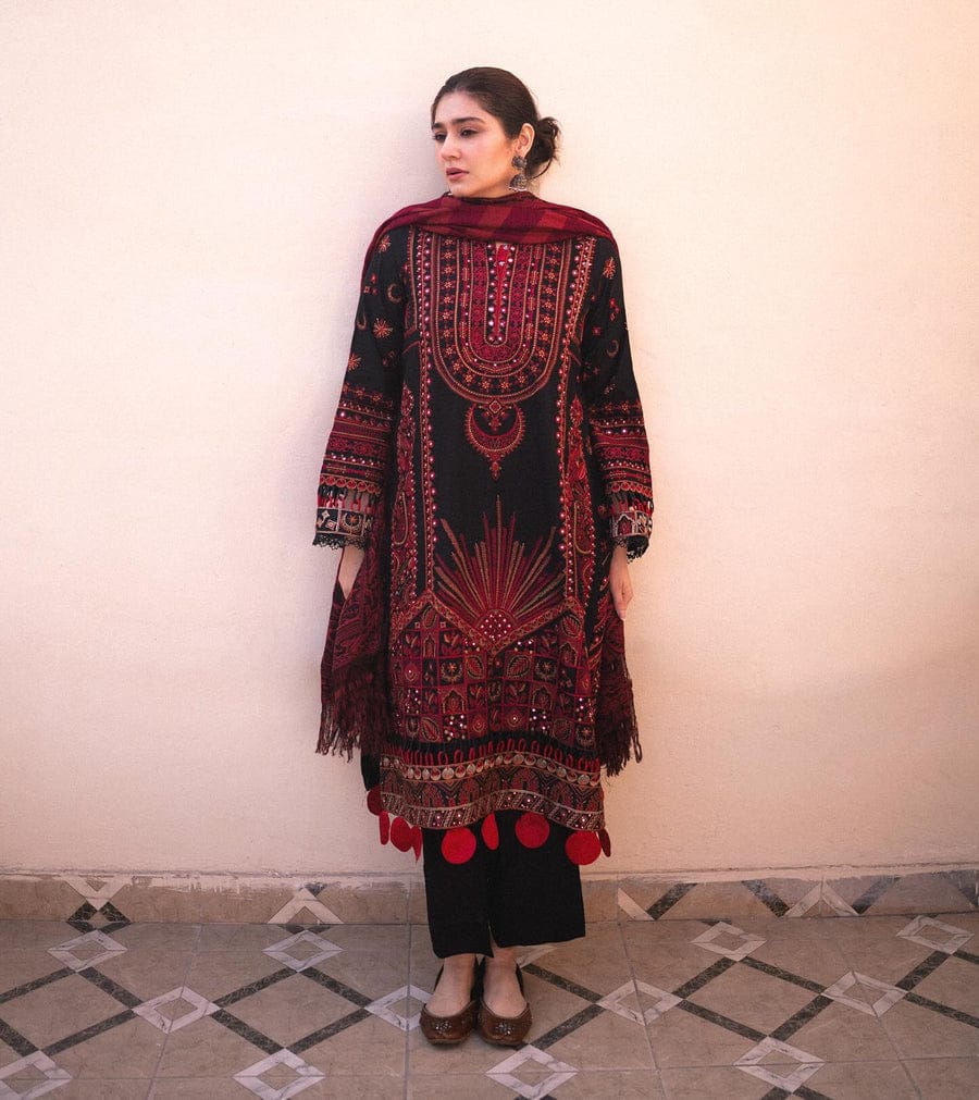 M.H Luxury Lawn Black & Rust Embroidery Dress 3pc
