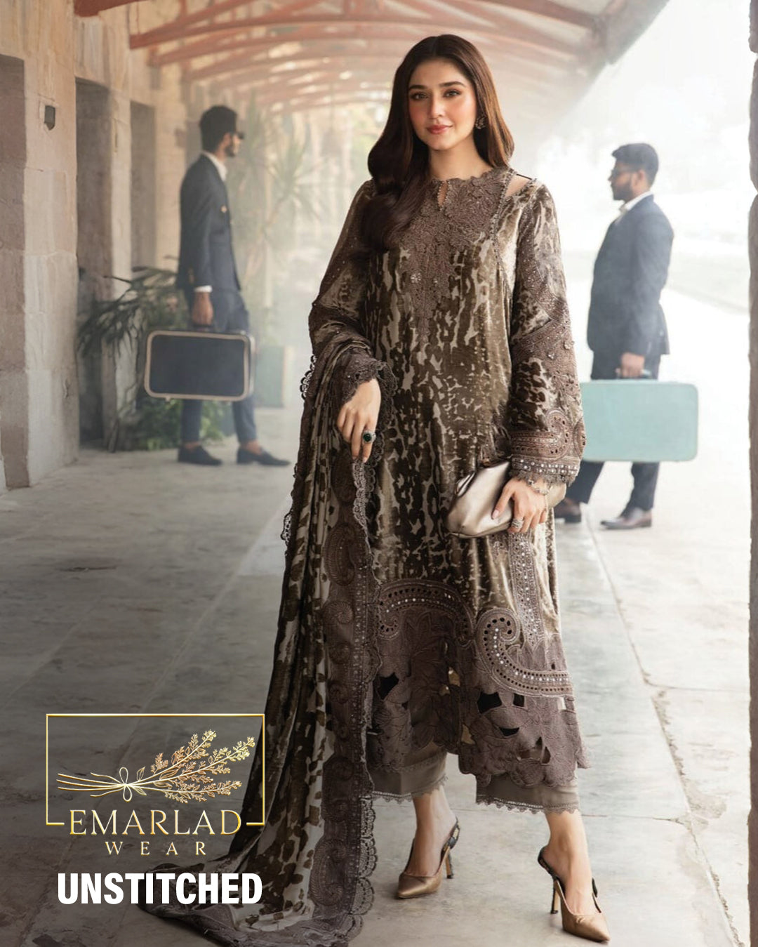Printed lawn front with heavy embroidered spengle work neck patch with 3D flower attached & heavy daman border