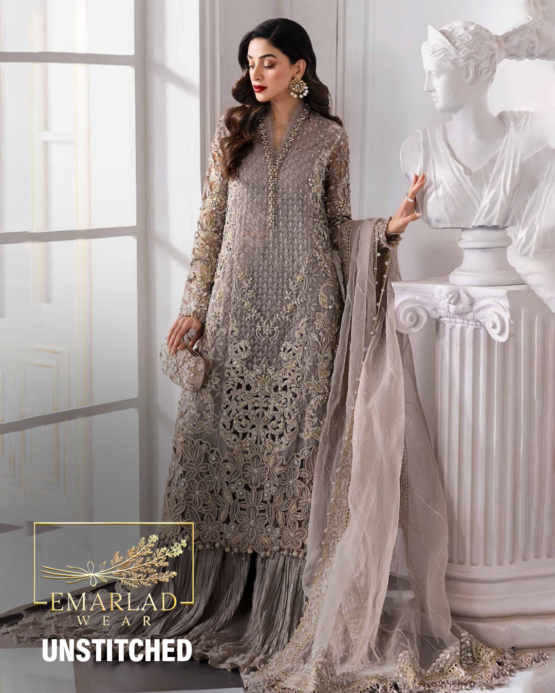 Maria B BD-3006 | Steel Grey - Chiffon Collection