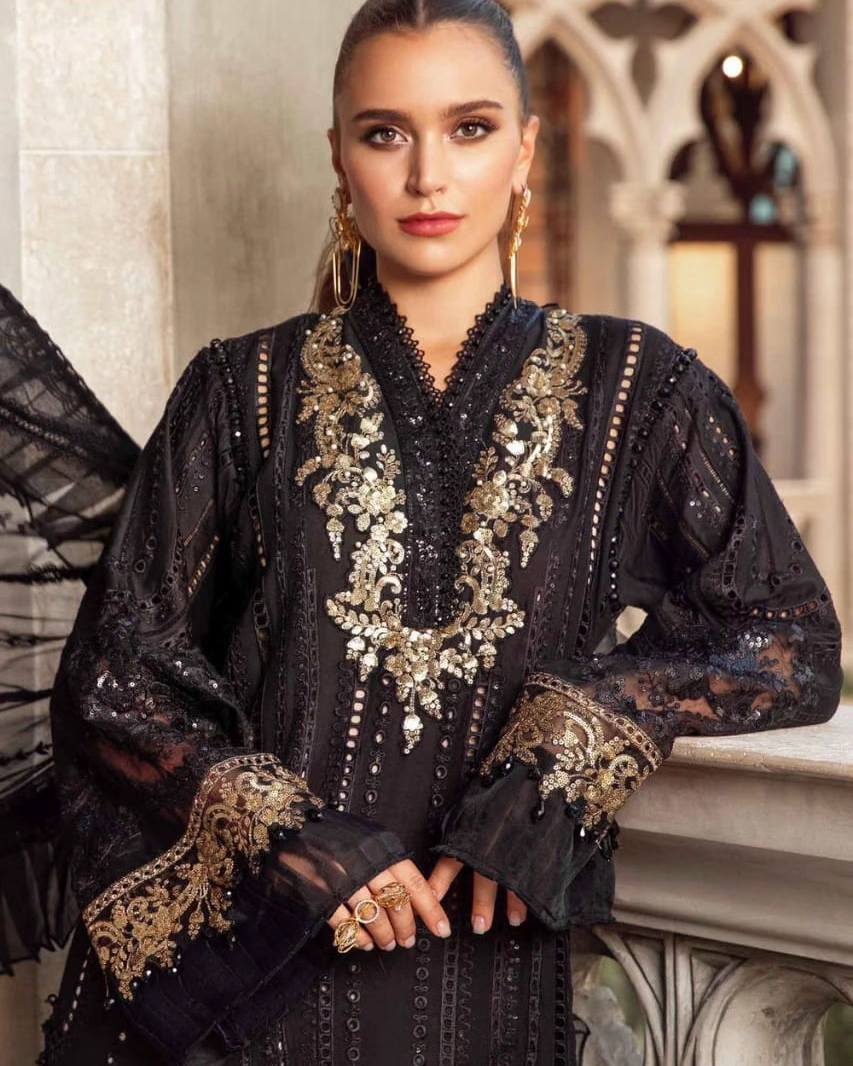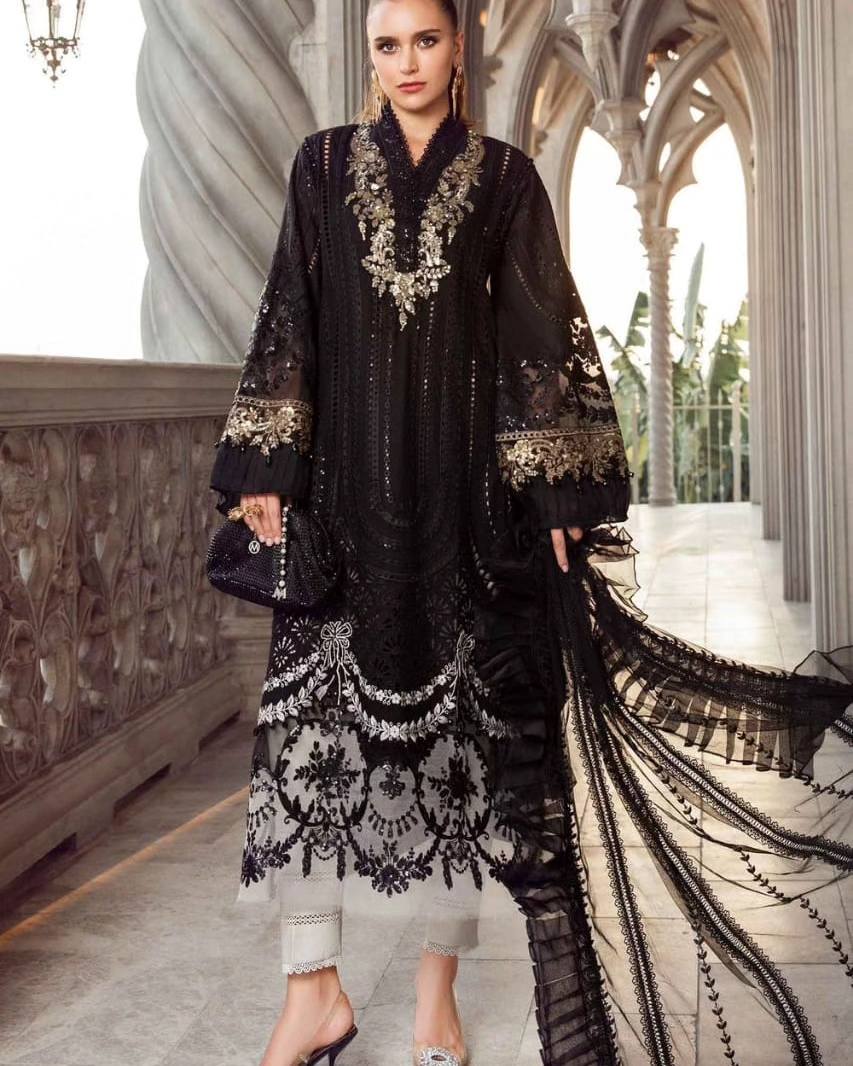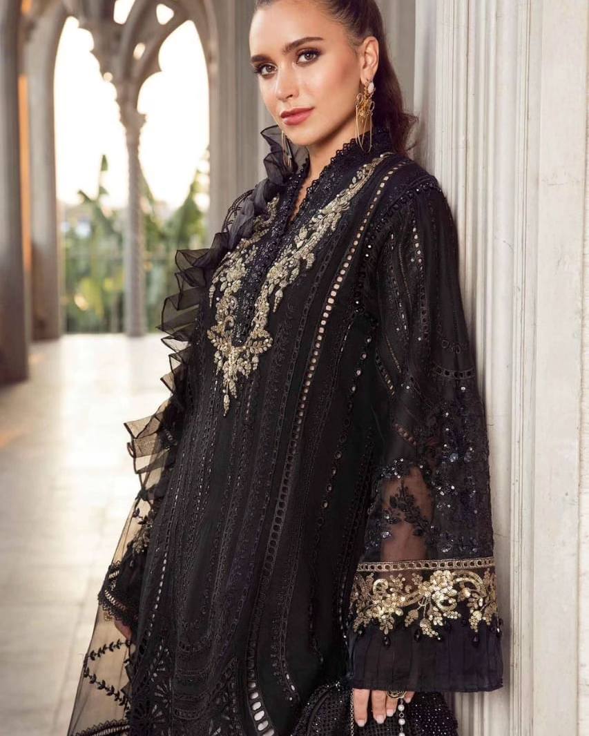 Maria B black Shifle Chikankari Embroidery Collection 3pc