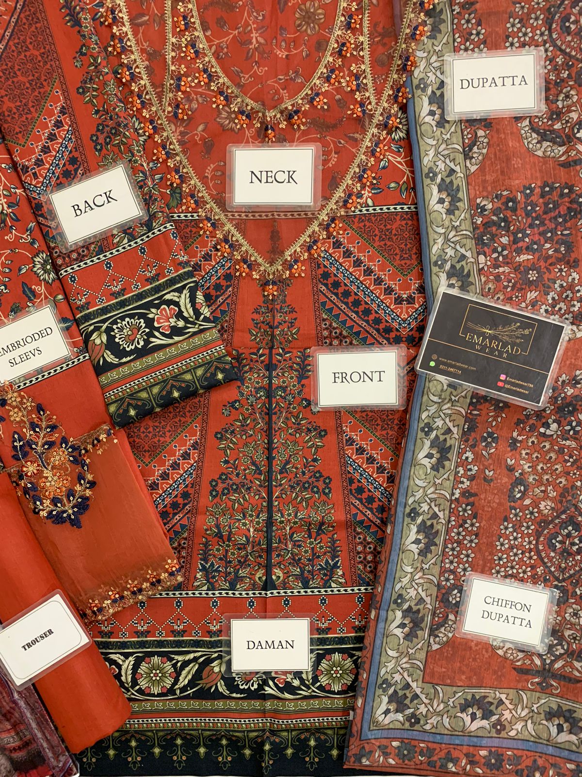 Maria B Cambric Cotton Red Chiffon Dupatta