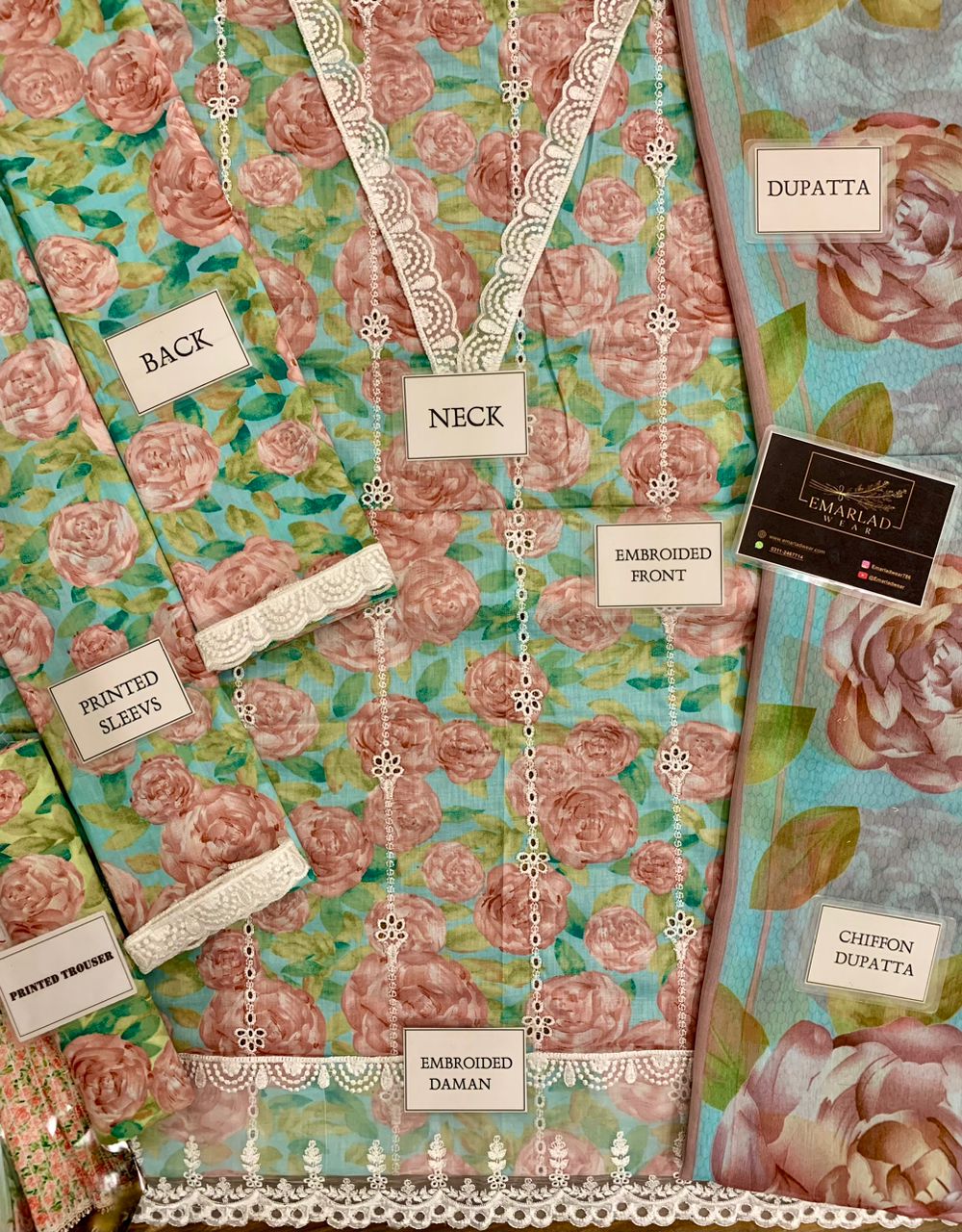 Maria B Green Chicken Emb New Arrival Lawn 3pc