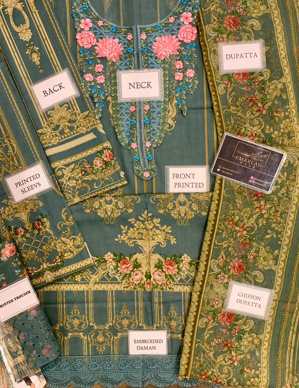 Maria B Green olive Lawn Digital Embroidery New Arrival 3pc