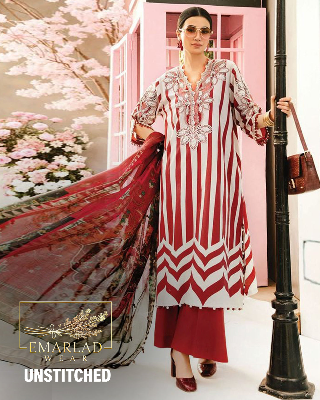 Maria B M-Print MPT-2609-A | Red & White Stripe - Lawn With Chiffon Dupatta Collection