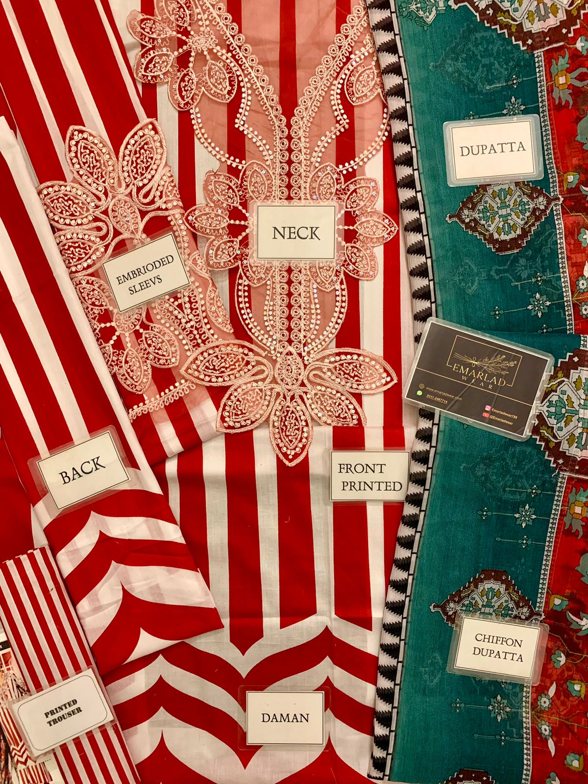 Maria B M-Print MPT-2609-A | Red & White Stripe  -  Lawn With Chiffon Dupatta Collection
