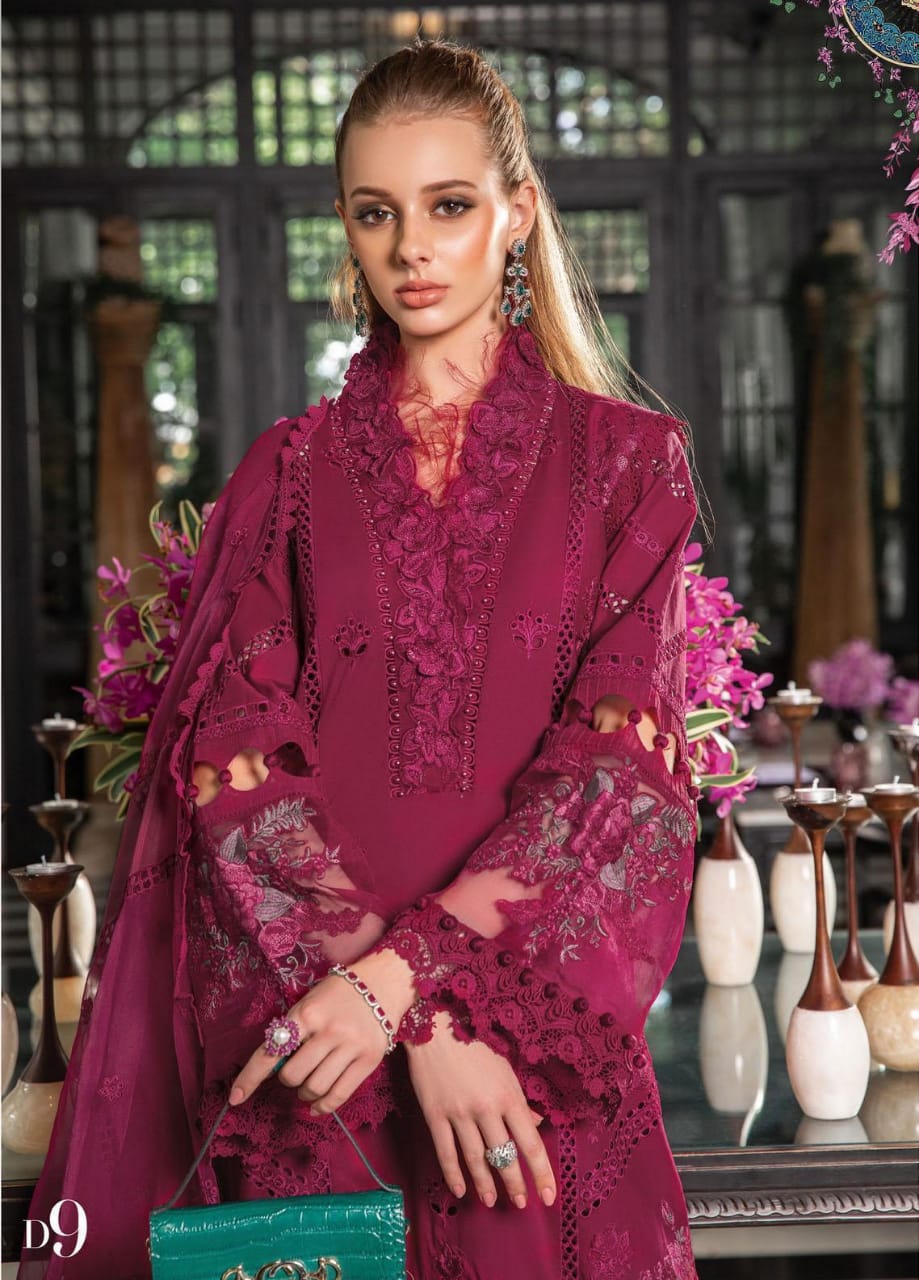 Maria B Magenta Chikankari Embroidery Dress 3pc