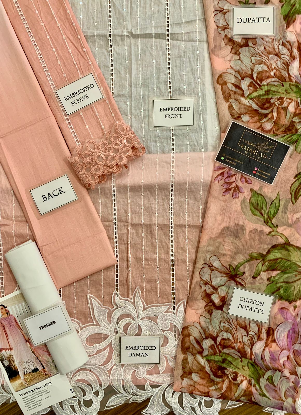 • Printed lawn front with fully heavy Schiffli embroidered spangle work