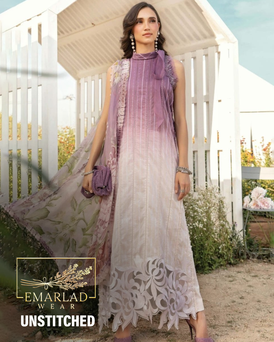 Printed lawn front with fully heavy Schiffli embroidered spangle work