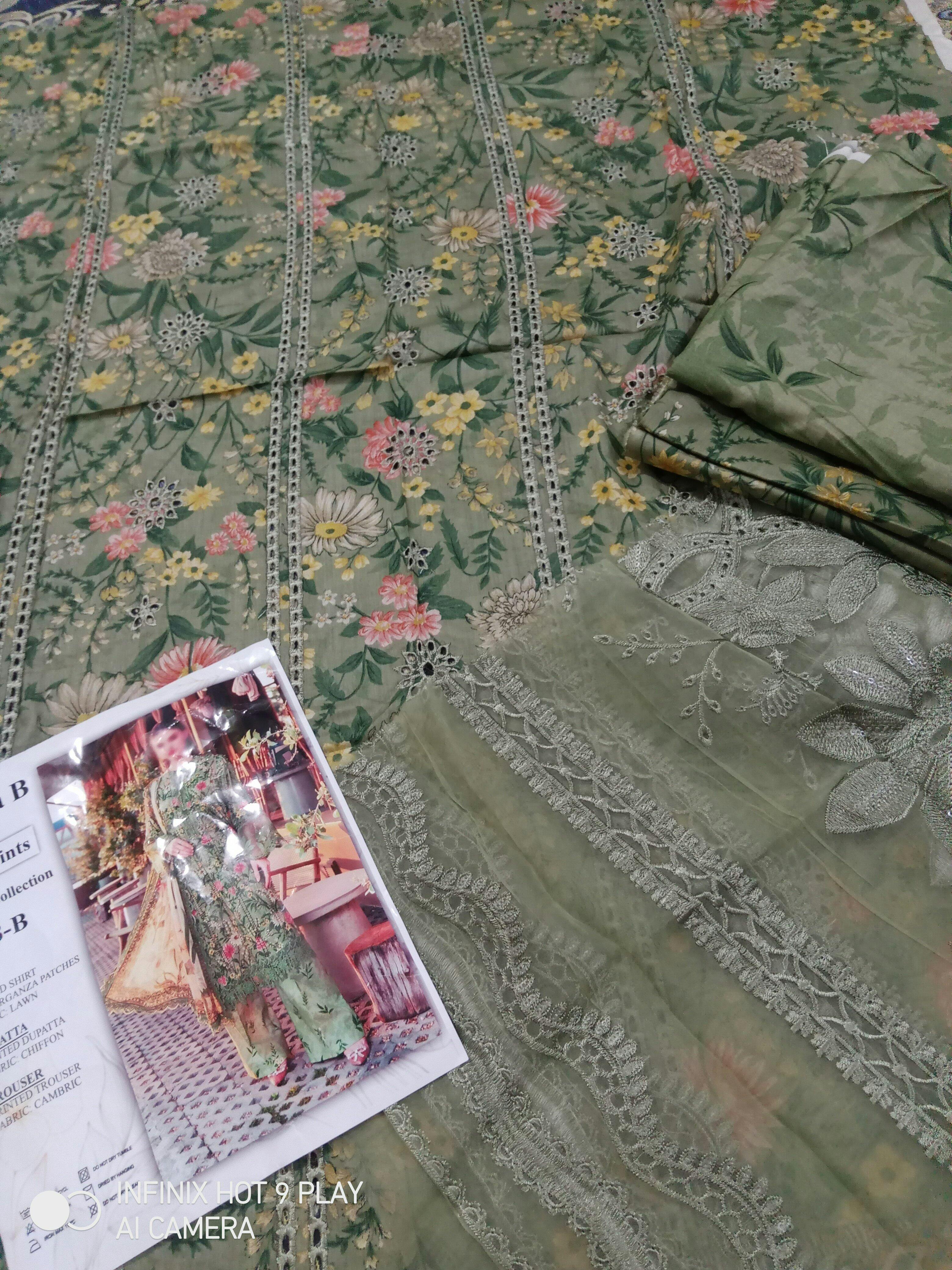 • Front: Printed lawn with fully heavy embroidered scifflie and heavy embroidered spengle work daman border