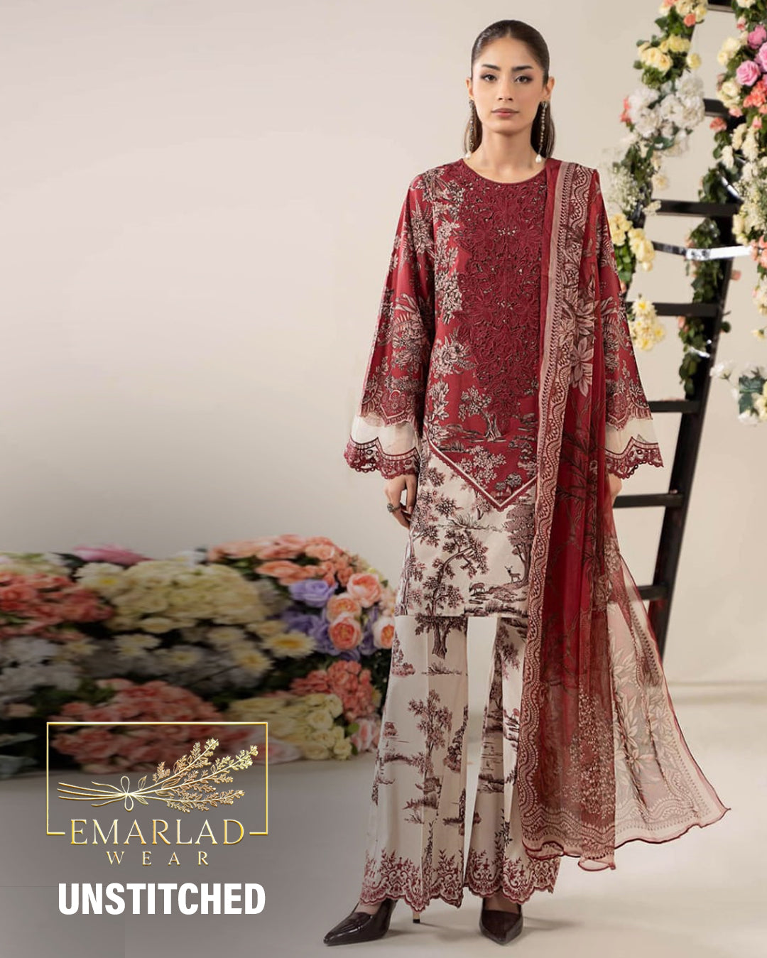 Maria B MPT-2608-A | Off White & Maroon - Lawn Collection