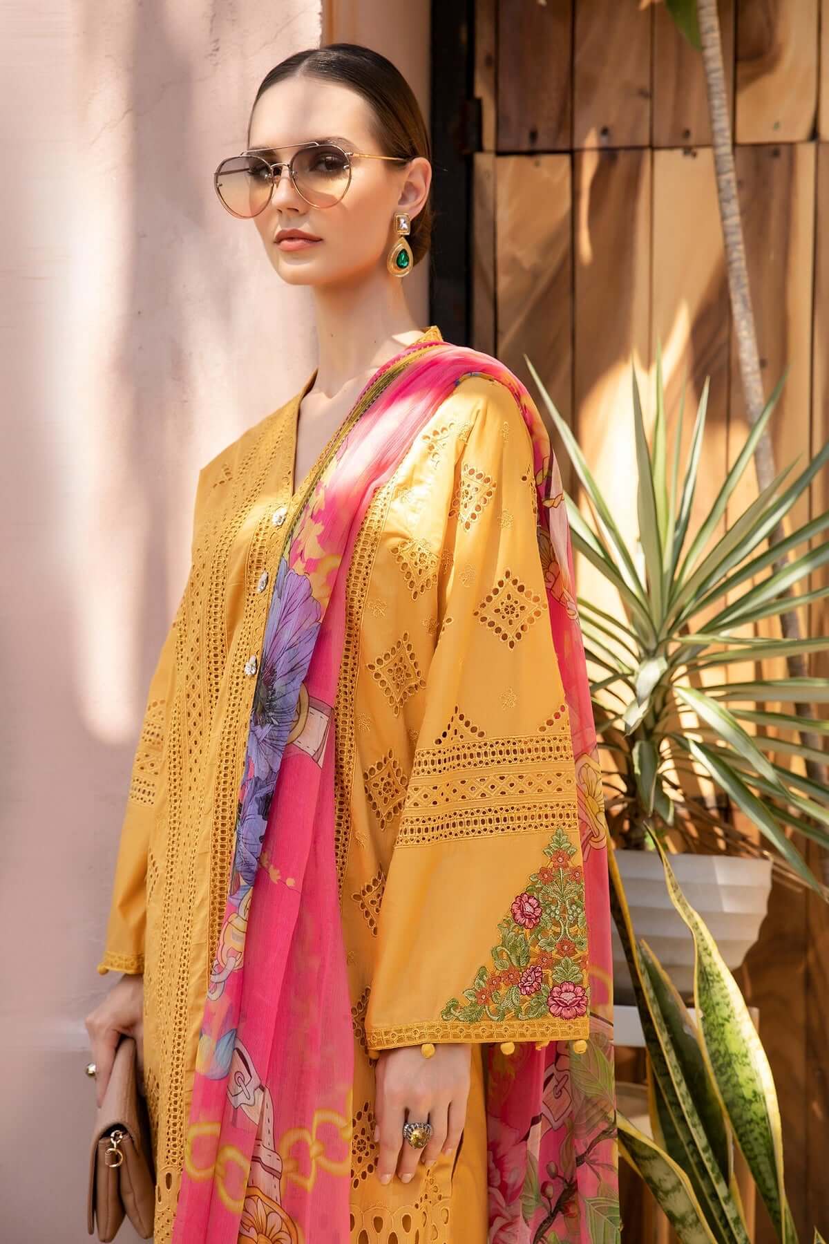 Maria B Orange Shiffle Chikankari Lawn Dress 3pc