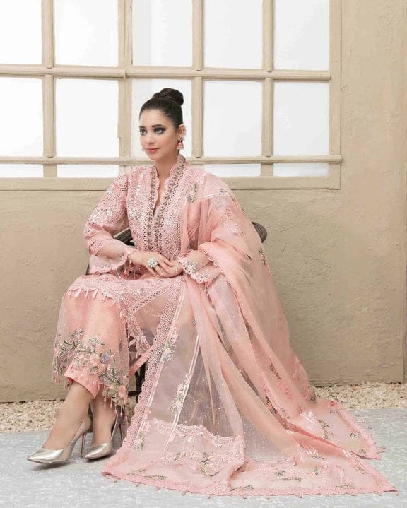 Maria B Peach Semi Stitch Organza Dress Hand Work Formal Collection