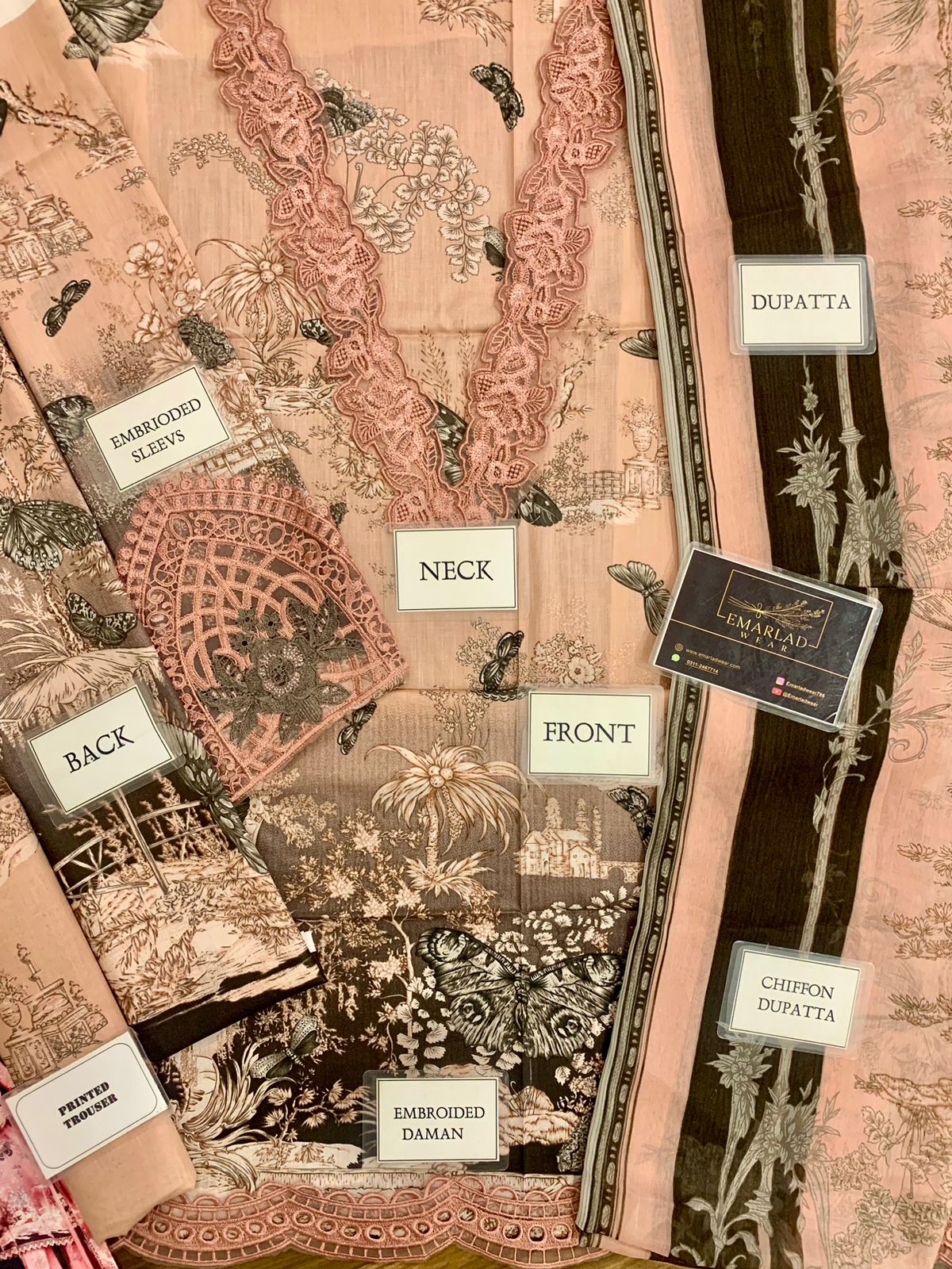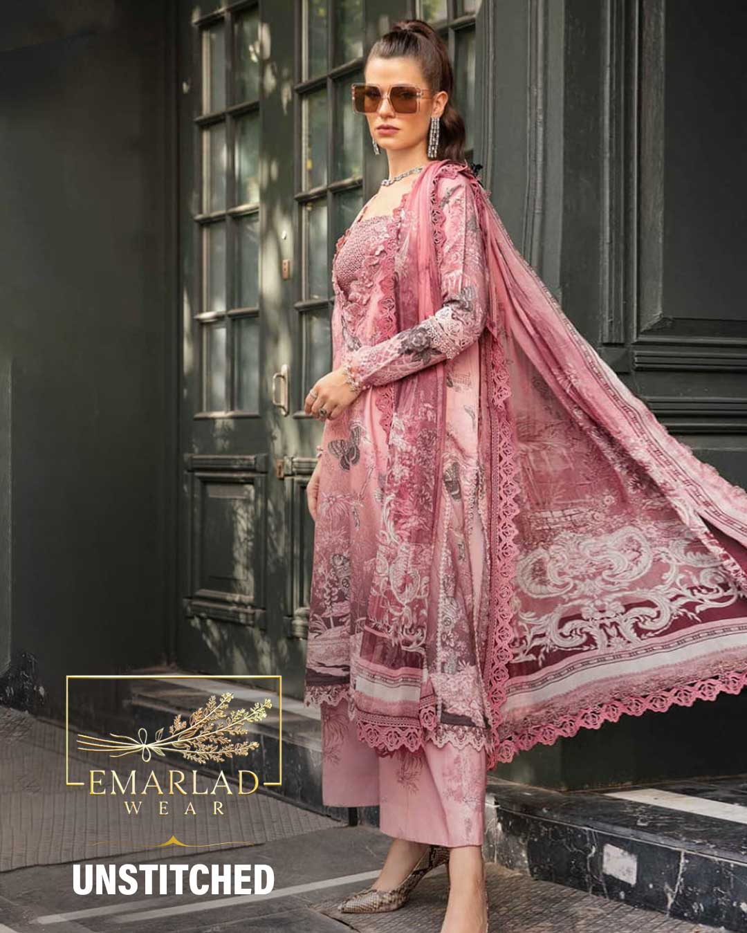 Maria B Pink Butterfly Lawn Chiffon Dupatta