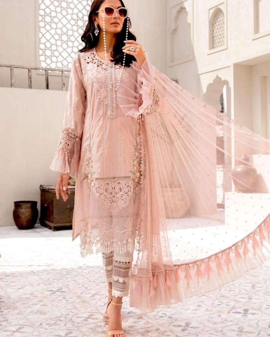 Maria B Pink Pure Lawn Print Embroidery Dress 3pc