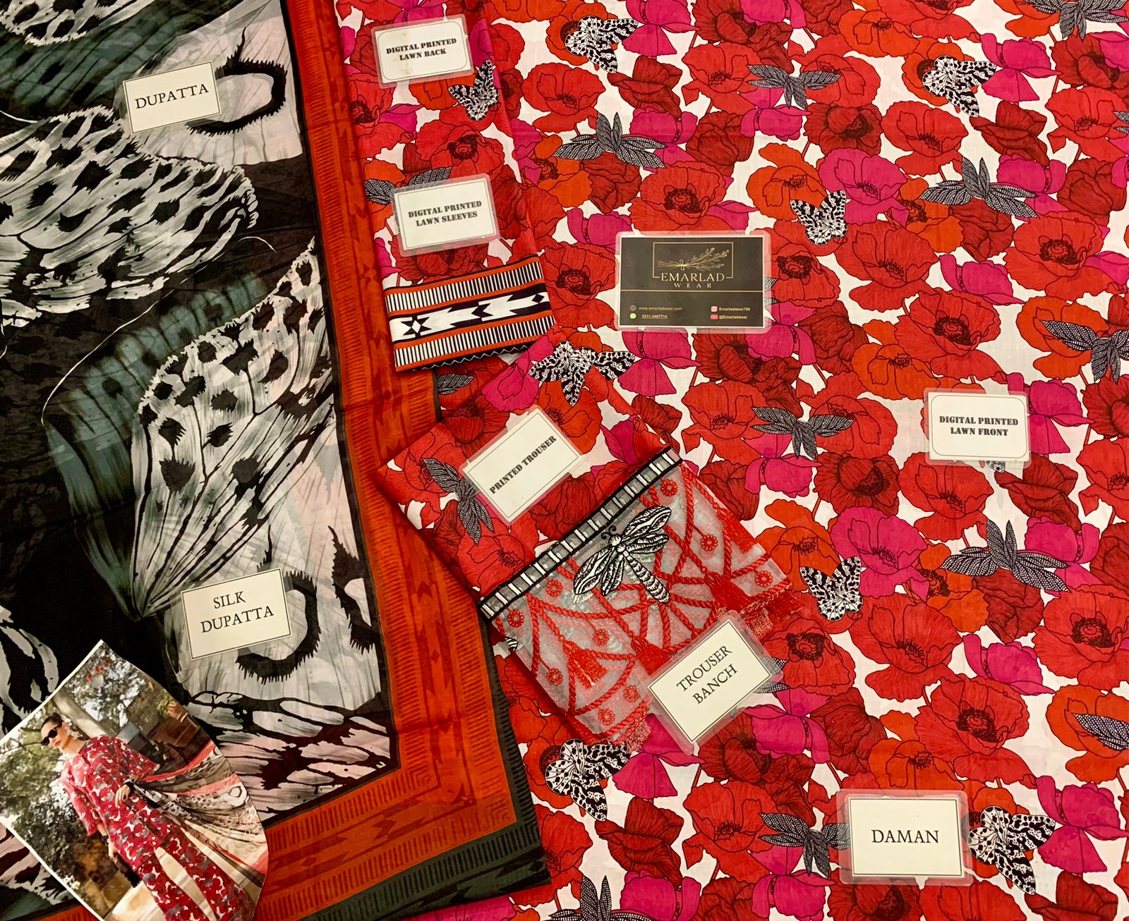 Maria B Red & Black Digital Emb New Arrival Lawn 3pc