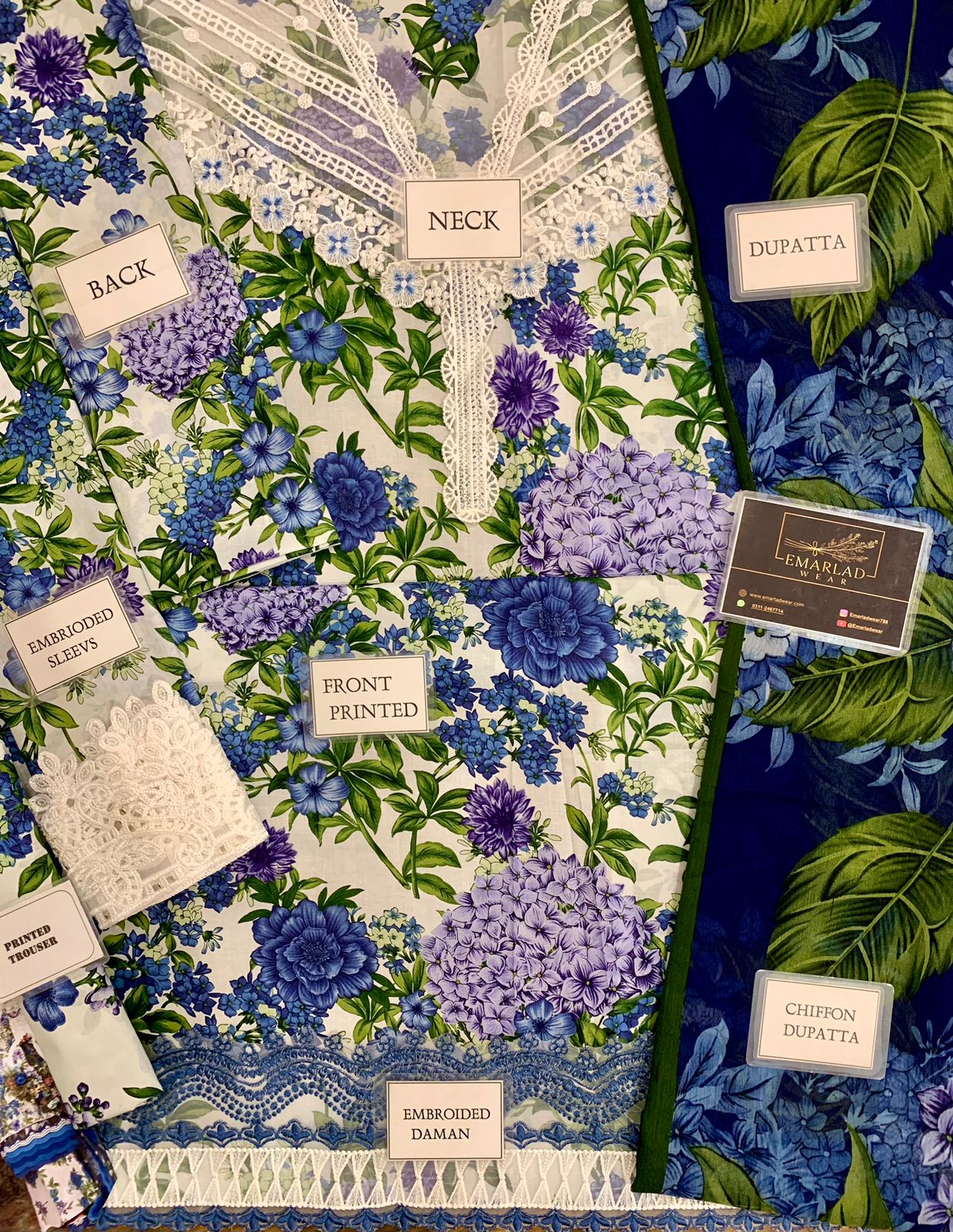 Maria B White & Blue Digital Emb New Arrival Lawn 3pc