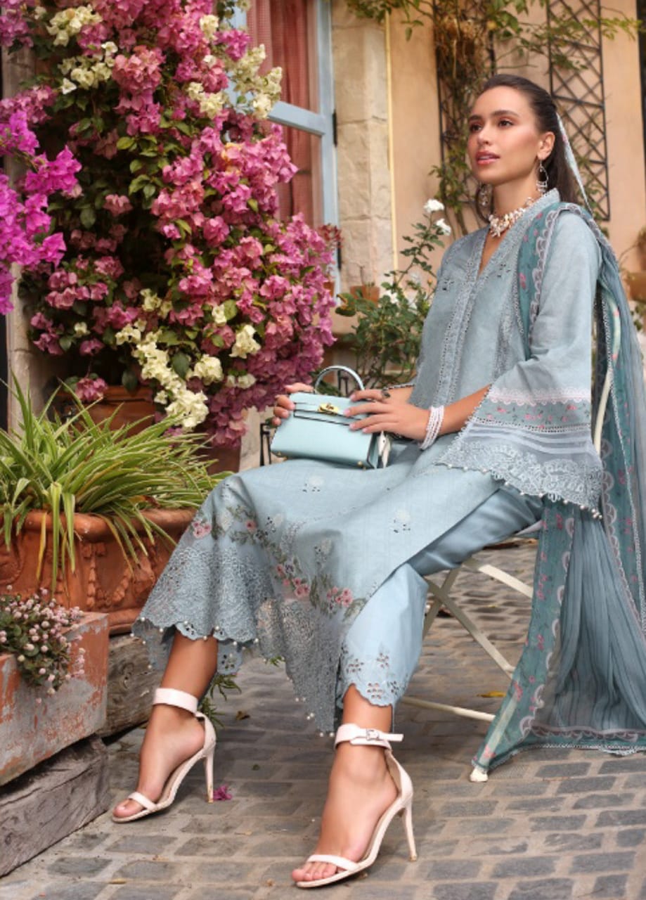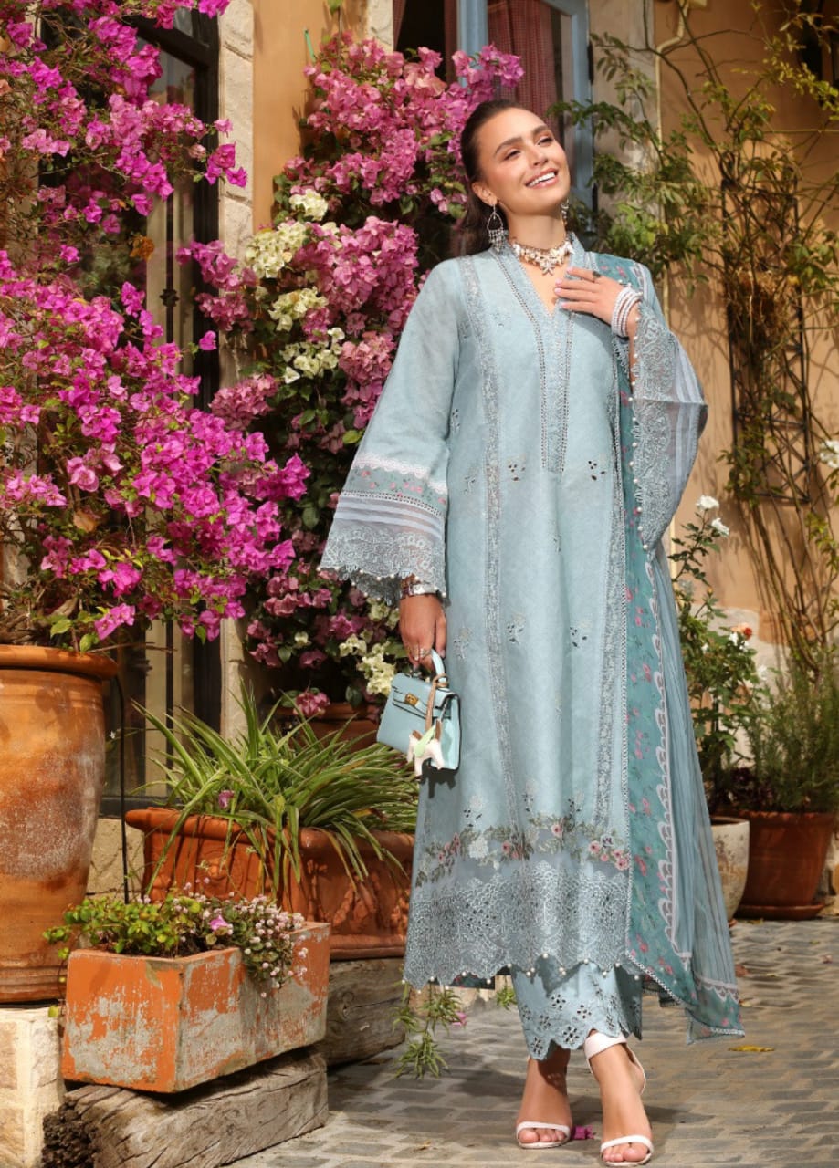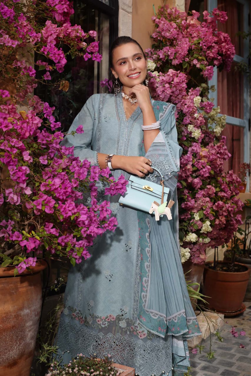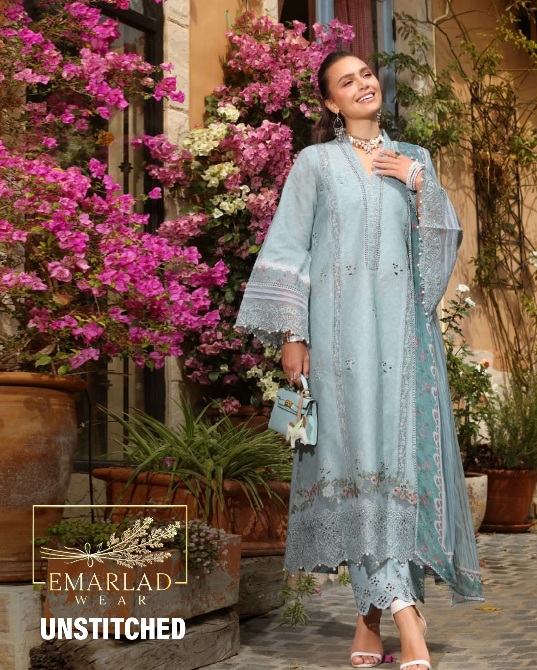 Front: Printed Lawn With Heavy Embroidered front With embroidered neck line on organza and heavy Embroidered Daman On organza