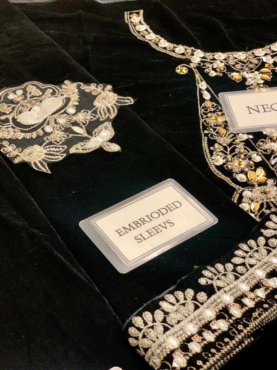 velvet fully heavy alternet embroidered spangle work front with fully hand embellishment adha & beats work front with velvet fully heavy embroidered spangle work daman boarder with fully hand embellishment adha work & beats work
